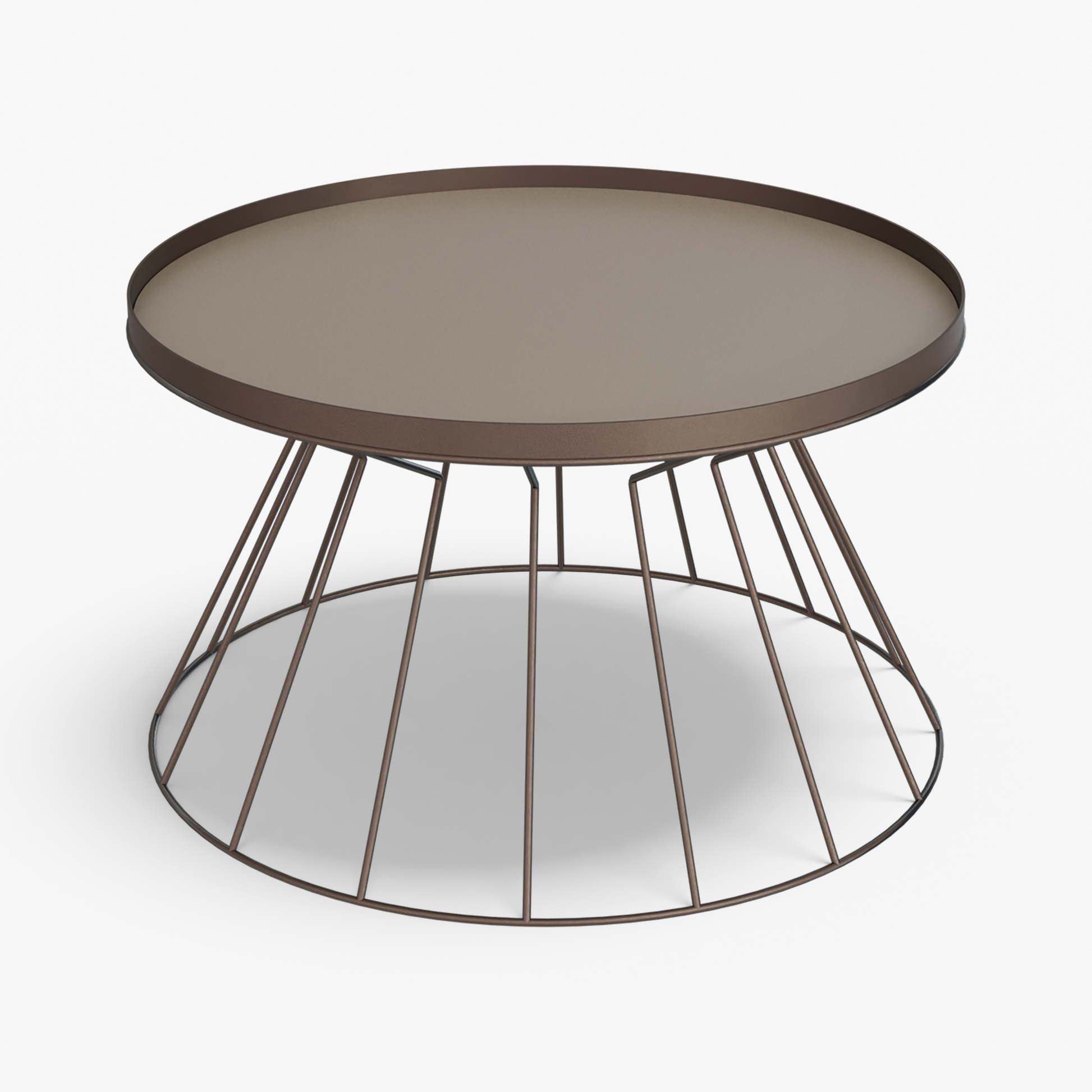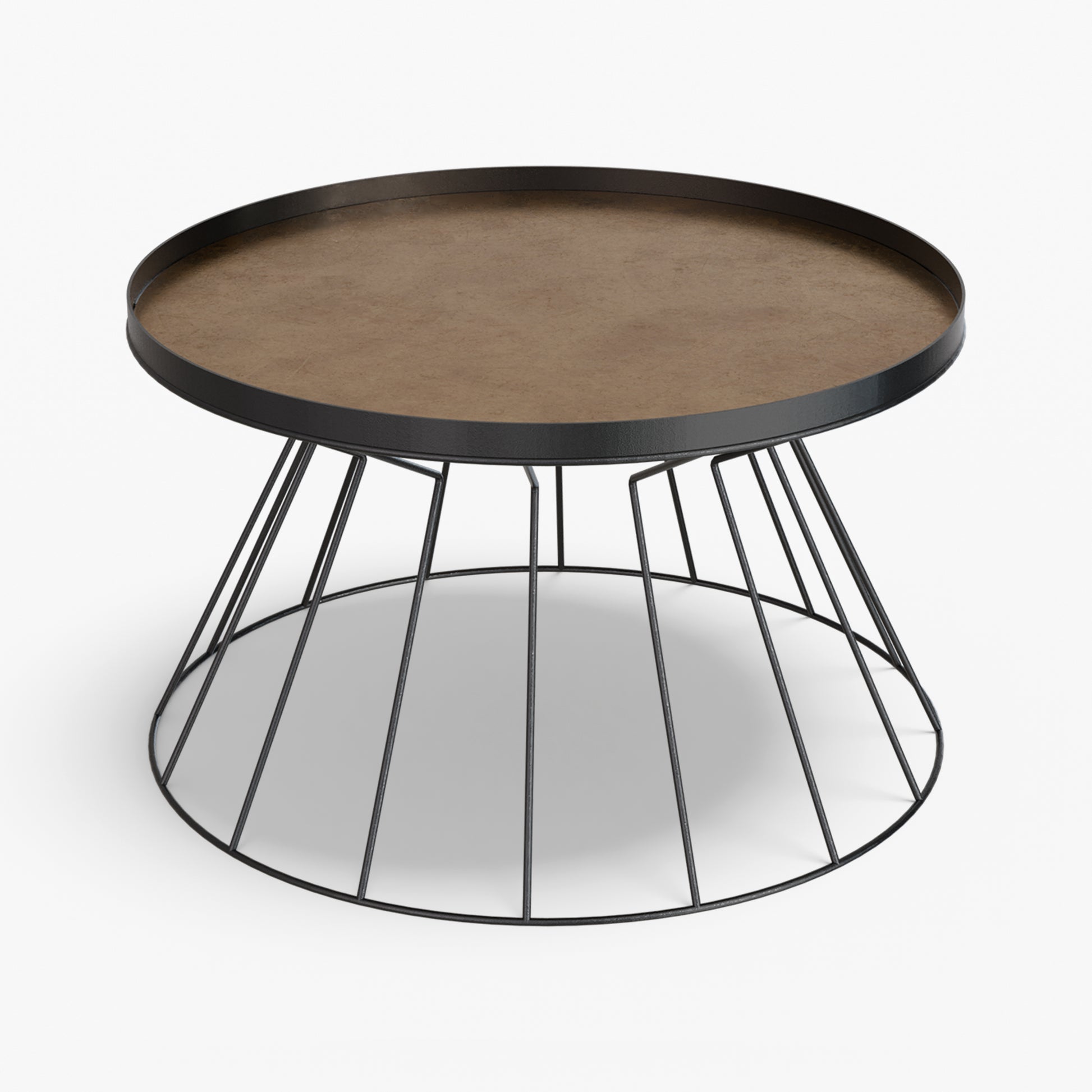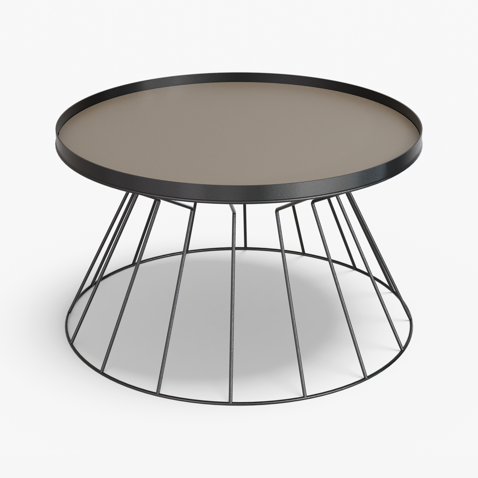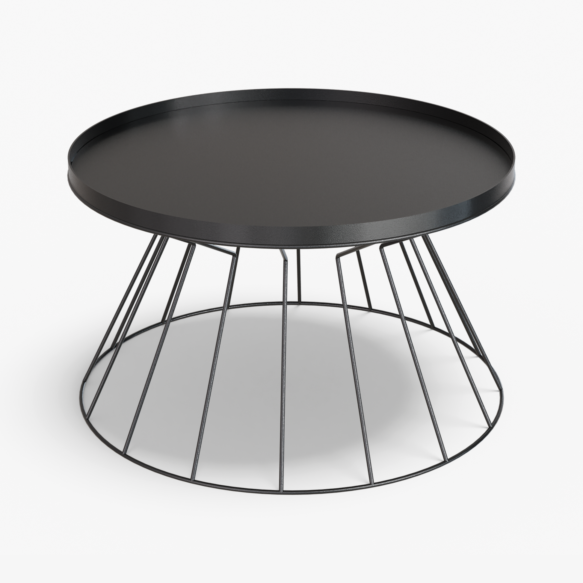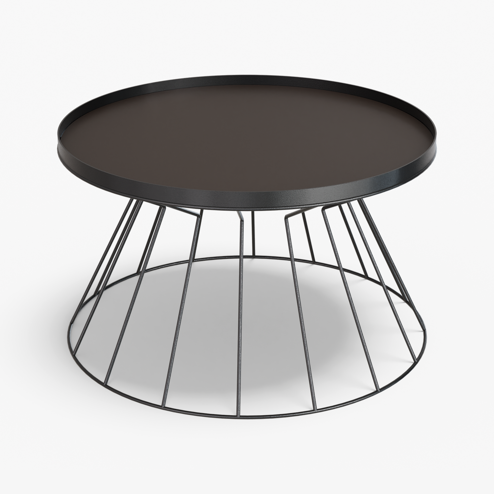 Coni is light on its feet but strong in character. A conical, wire frame base rises to meet a slim, tray top, creating a clean graphic silhouette that feels airy from every angle. The structure is crafted from steel and finished with powder coating. Made for everyday use, the raised rim helps keep cups and small objects in place. Easy to move and style, Coni sits comfortably by a sofa or lounge chair and brings a refined, modern note without adding visual weight.