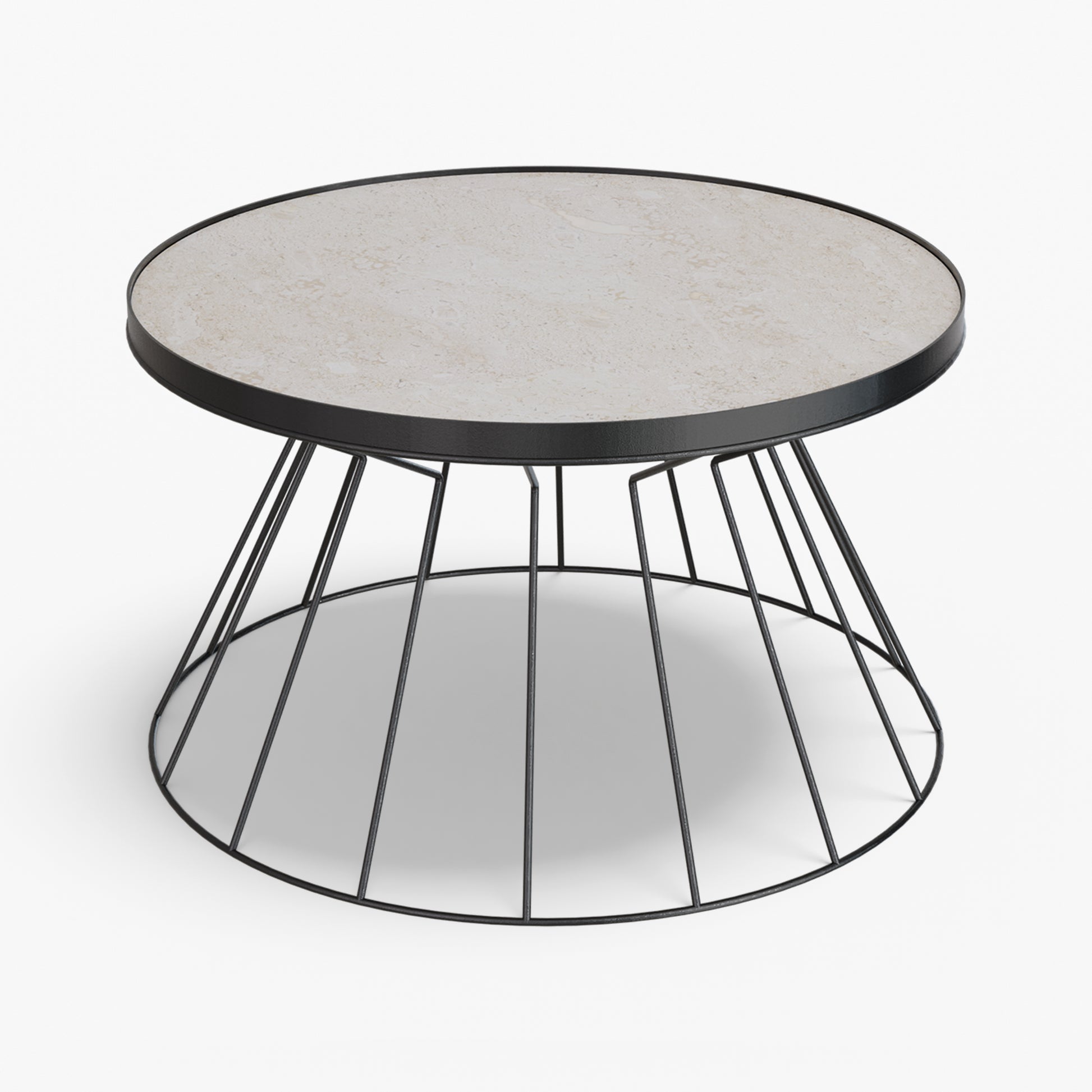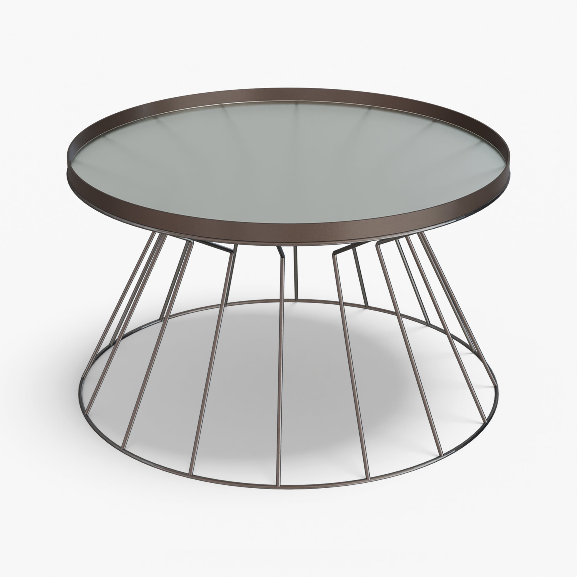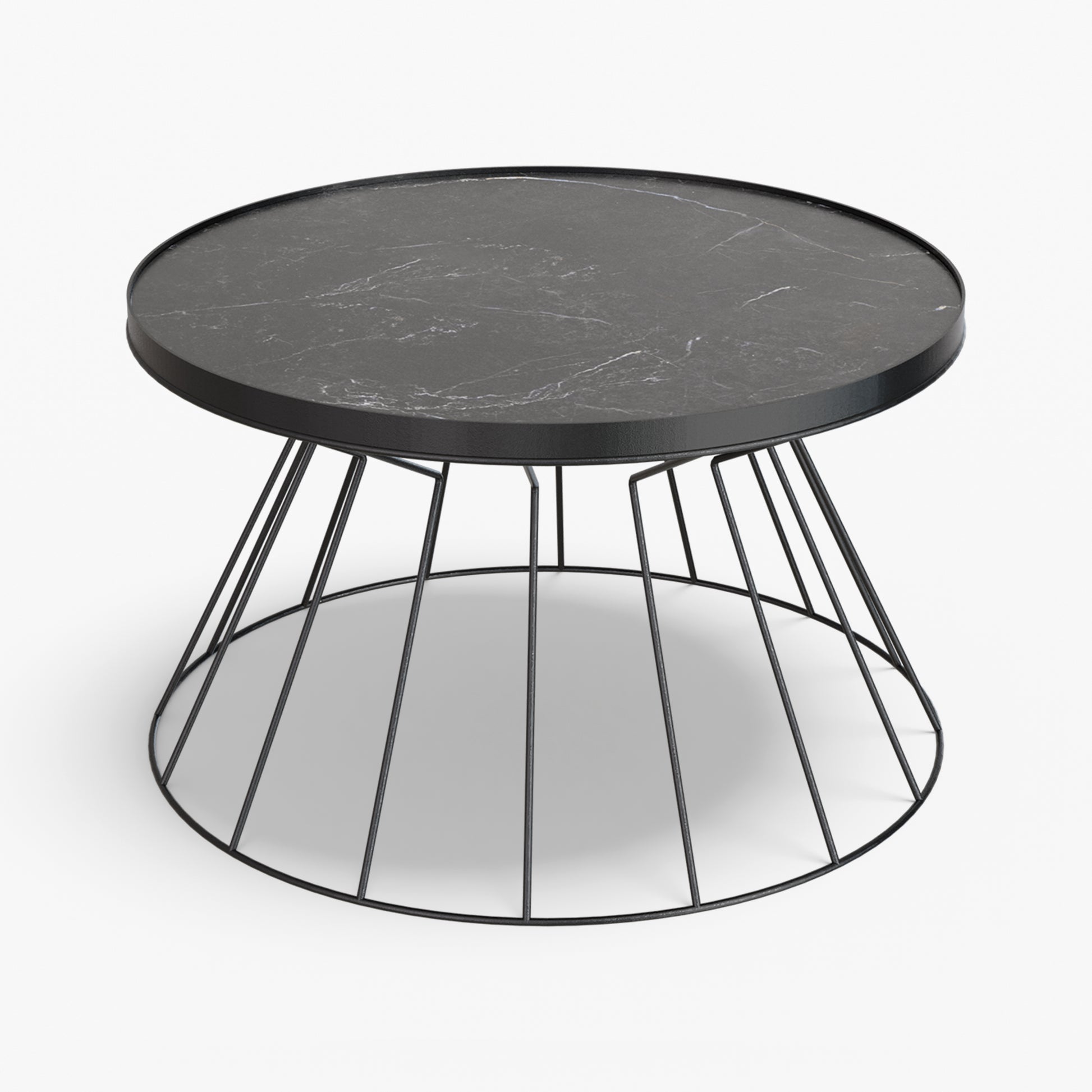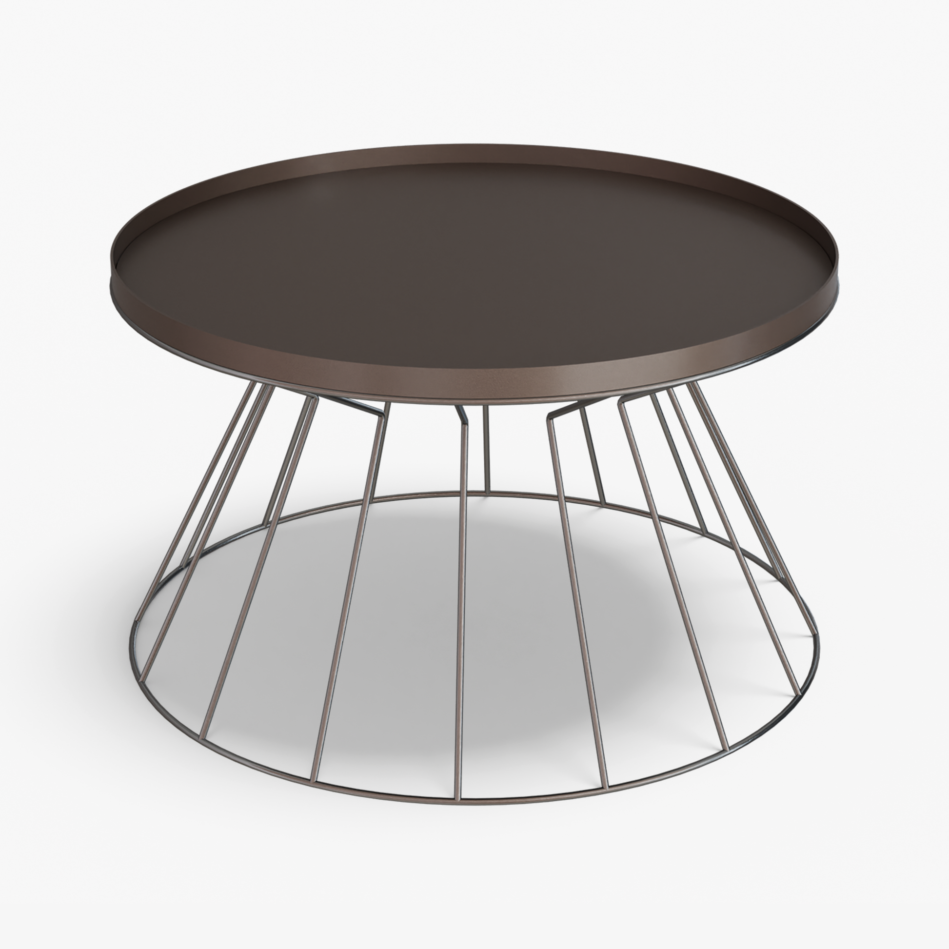 Coni is light on its feet but strong in character. A conical, wire frame base rises to meet a slim, tray top, creating a clean graphic silhouette that feels airy from every angle. The structure is crafted from steel and finished with powder coating. Made for everyday use, the raised rim helps keep cups and small objects in place. Easy to move and style, Coni sits comfortably by a sofa or lounge chair and brings a refined, modern note without adding visual weight.