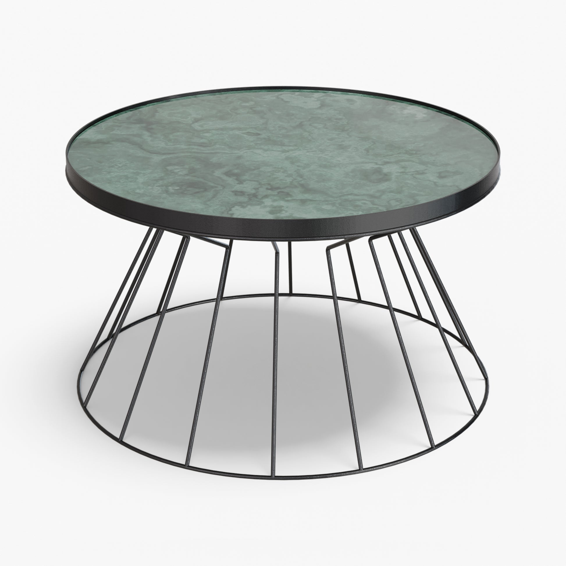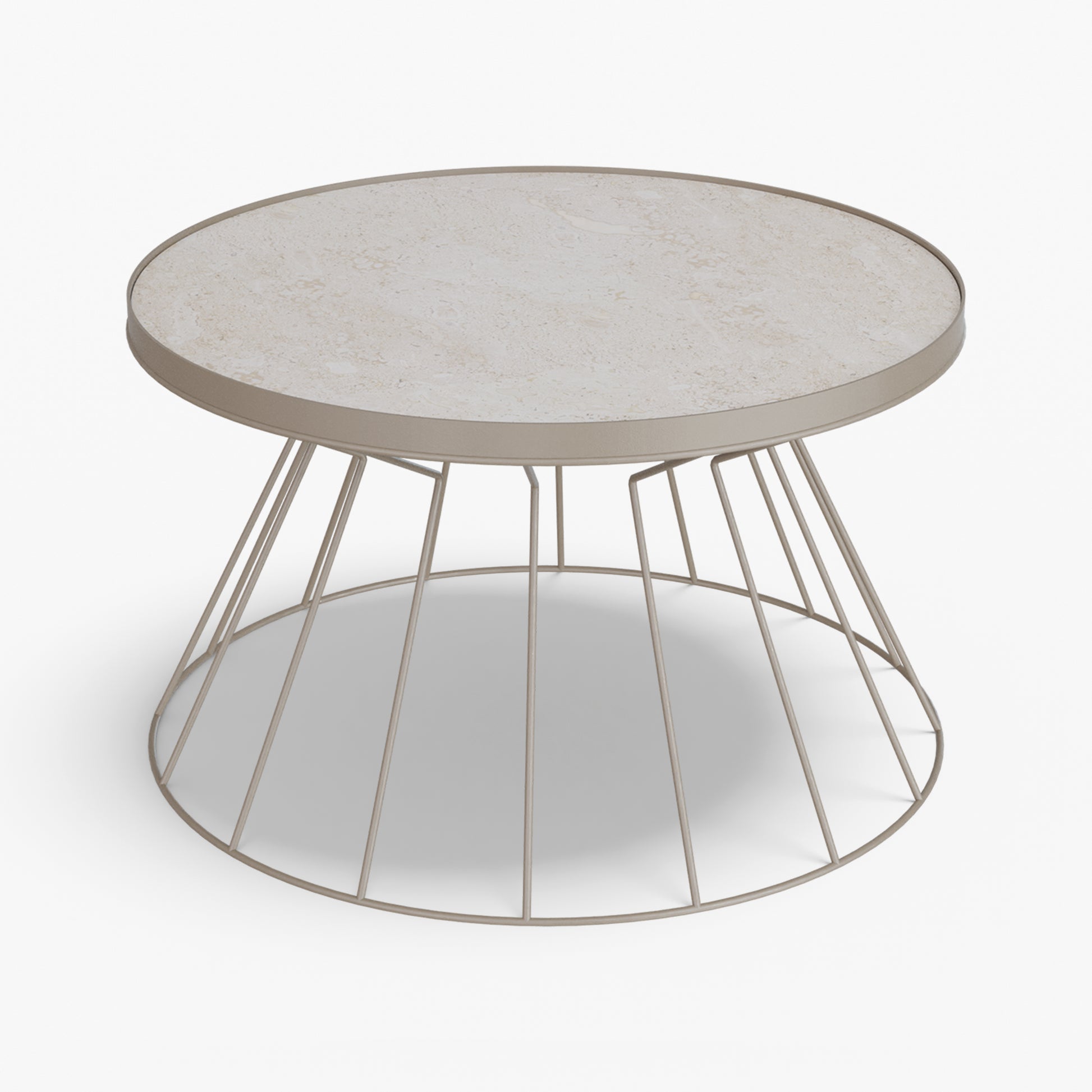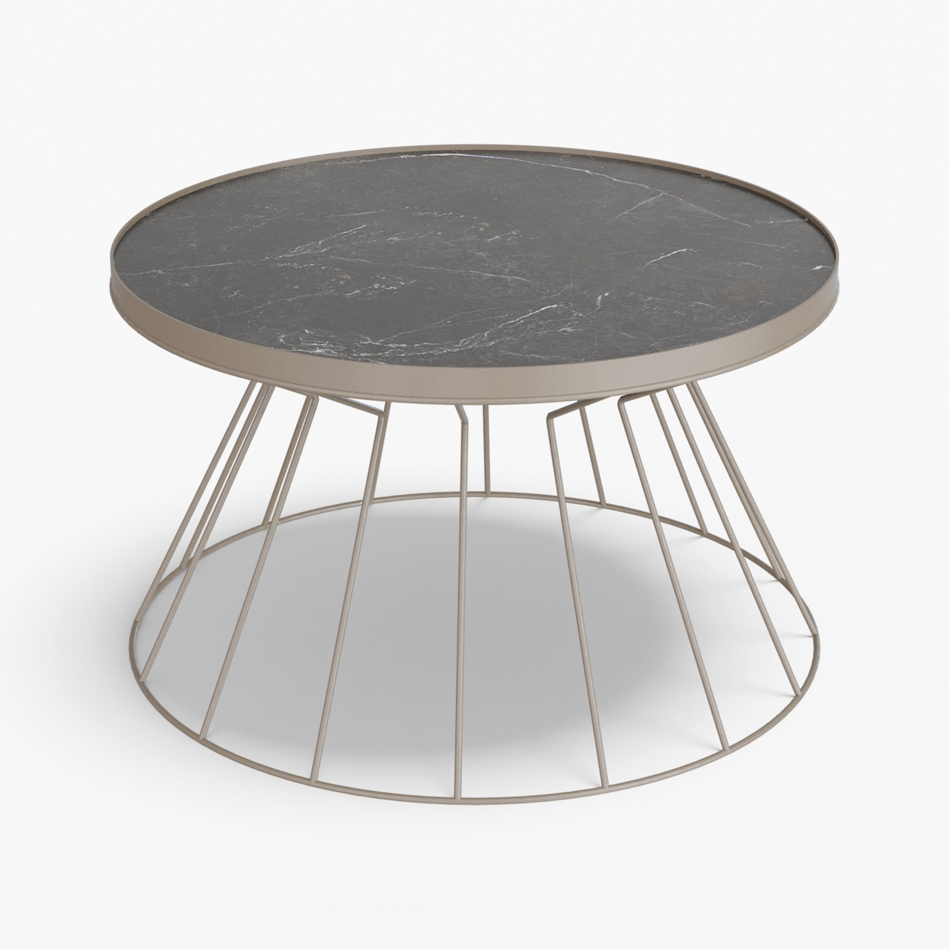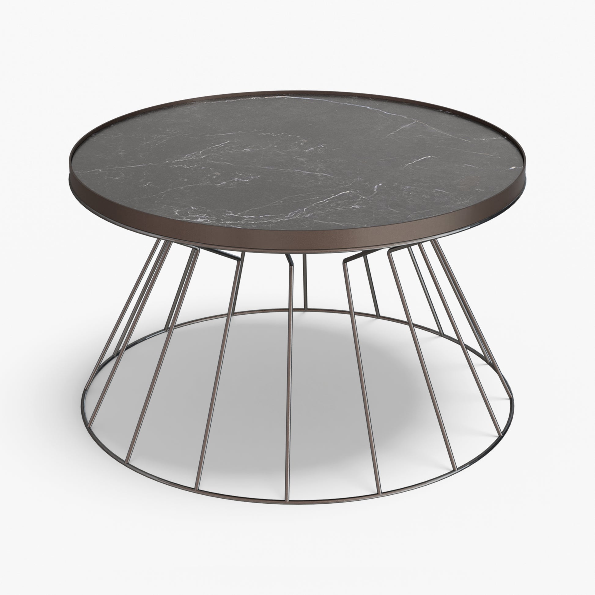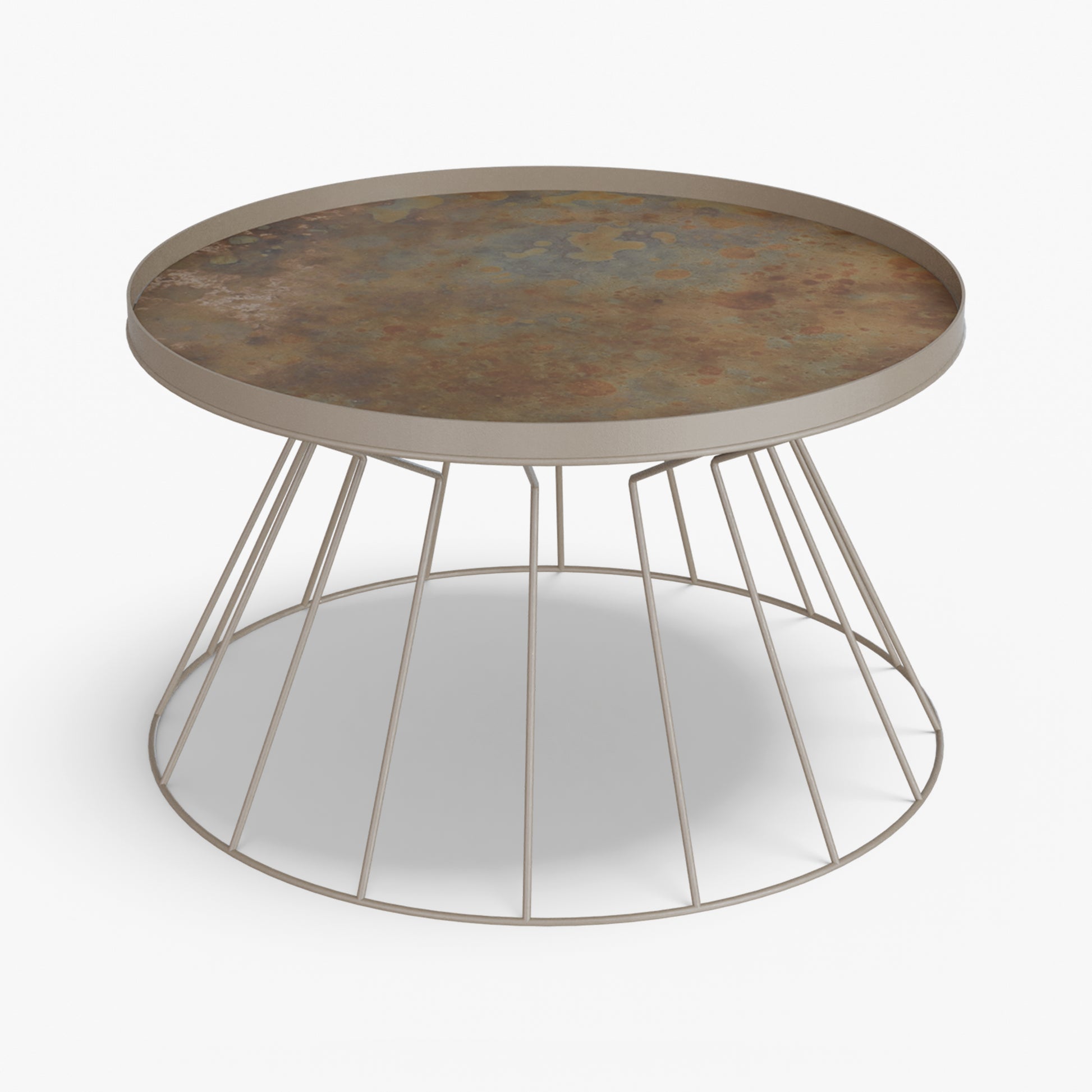 Coni is light on its feet but strong in character. A conical, wire frame base rises to meet a slim, tray top, creating a clean graphic silhouette that feels airy from every angle. The structure is crafted from steel and finished with powder coating. Made for everyday use, the raised rim helps keep cups and small objects in place. Easy to move and style, Coni sits comfortably by a sofa or lounge chair and brings a refined, modern note without adding visual weight.