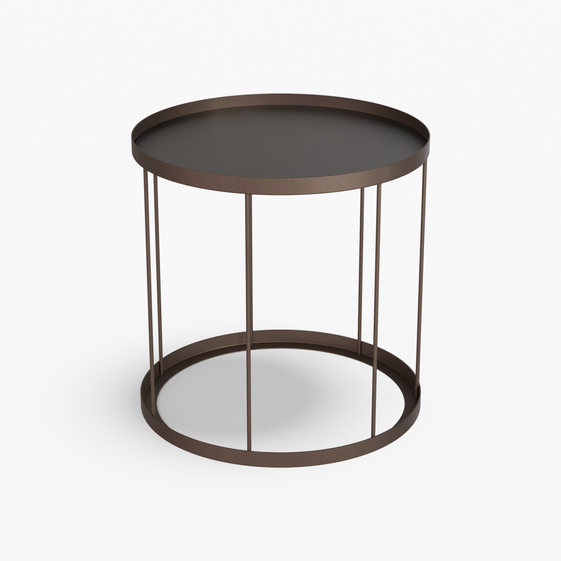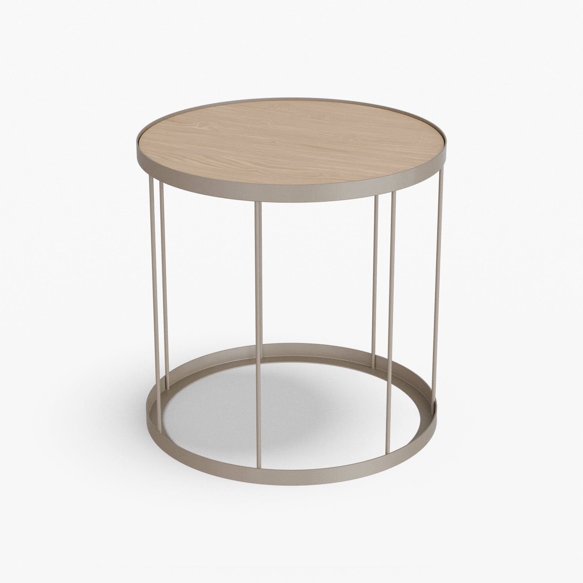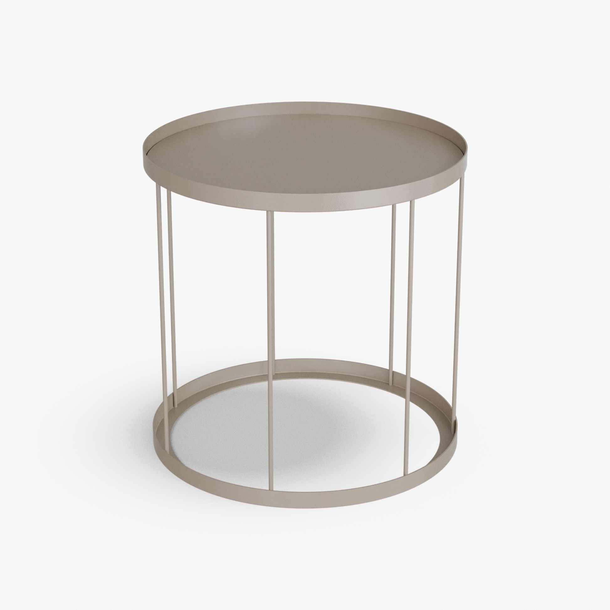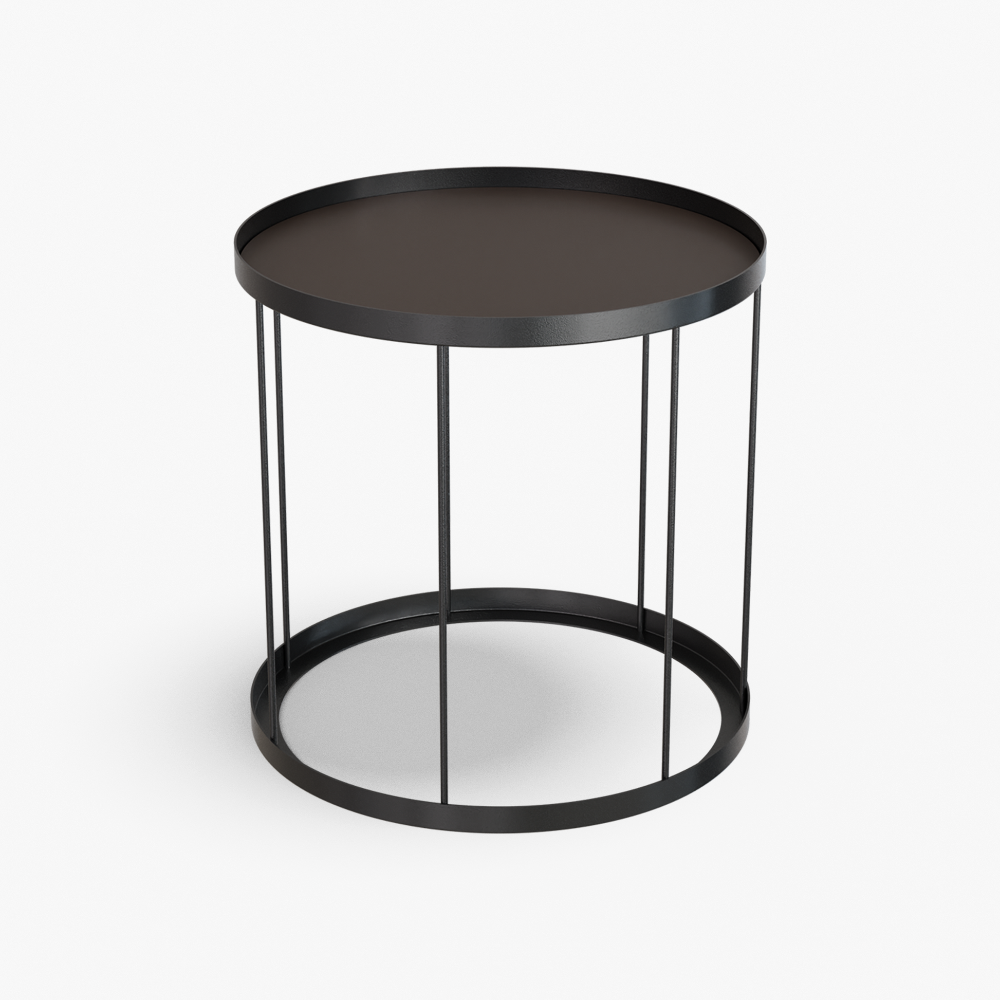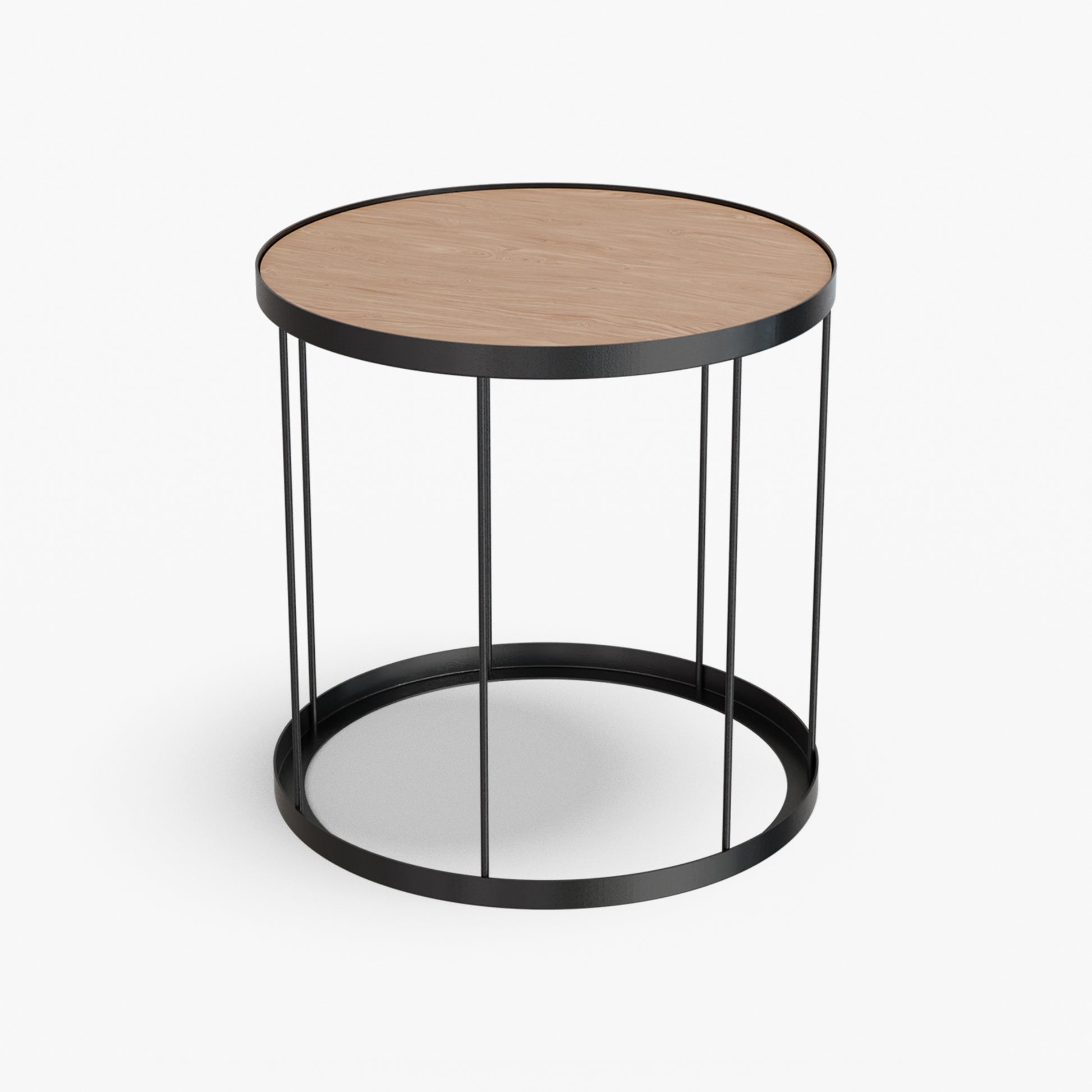 Drum gives the classic round table a rhythm: a top set in a slim steel rim, lifted on slender uprights and anchored by a circular base ring. The open design keeps sightlines clear and the room feeling light, while the metal rim neatly protects the tabletop edge for everyday use. The frame is welded steel with a powder-coat finish (a tough, baked-on layer that resists chips and scratches) for long-term durability. Style it with a tray or let the sculptural silhouette take center stage.