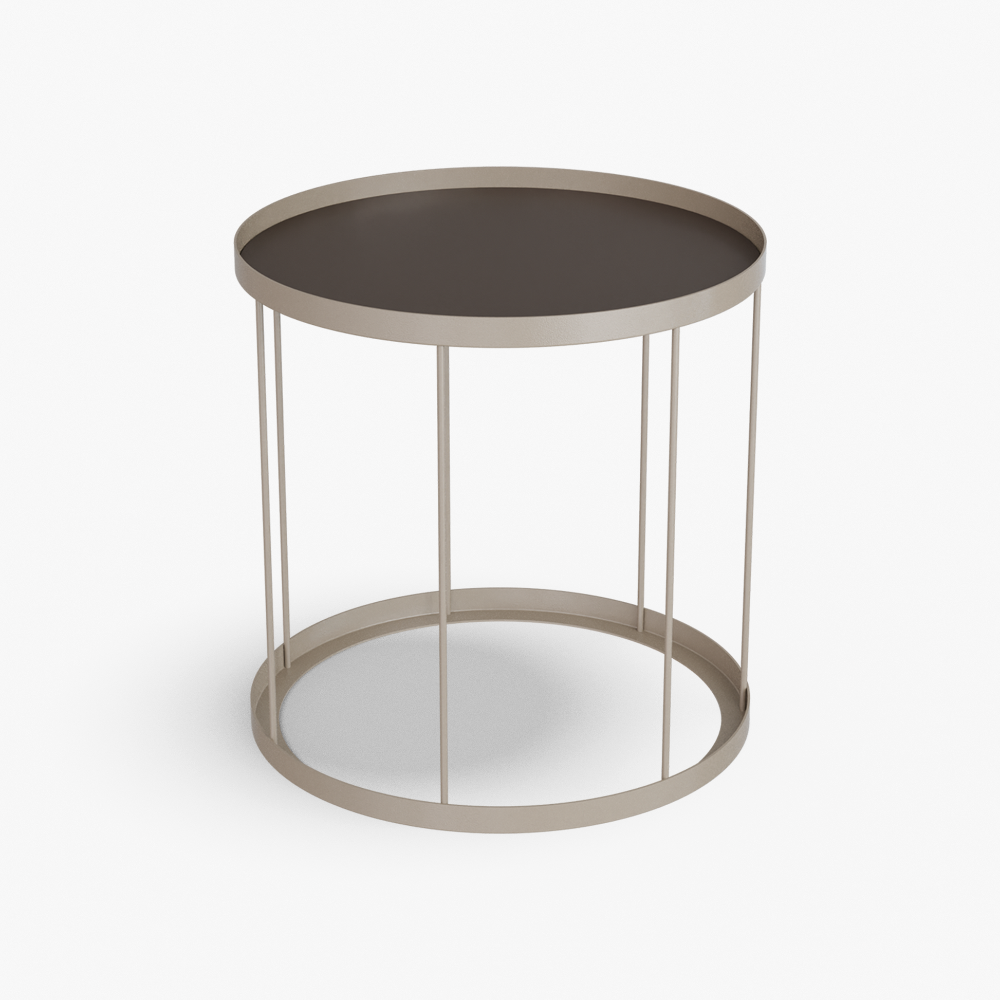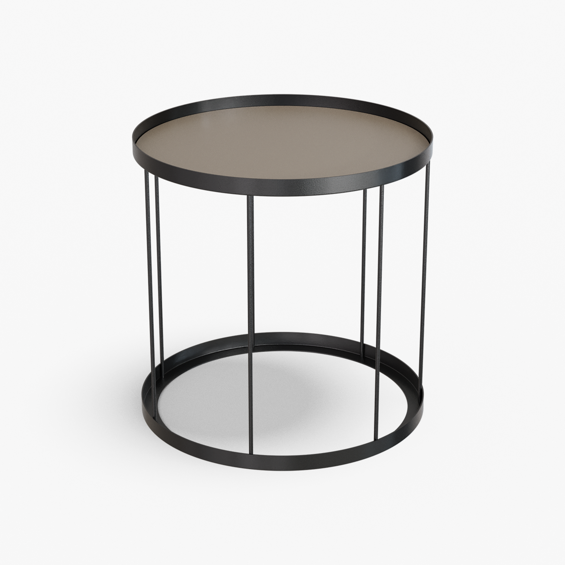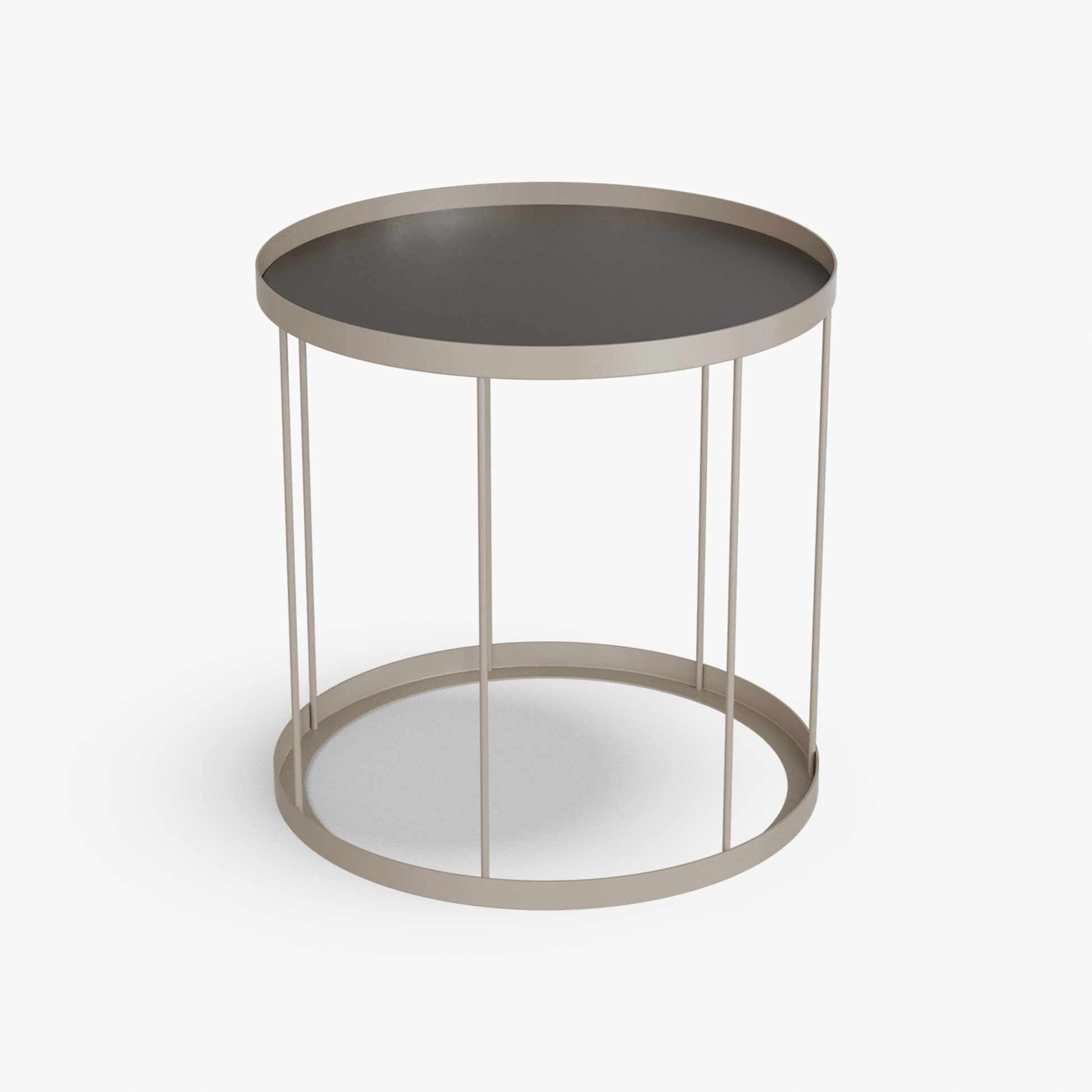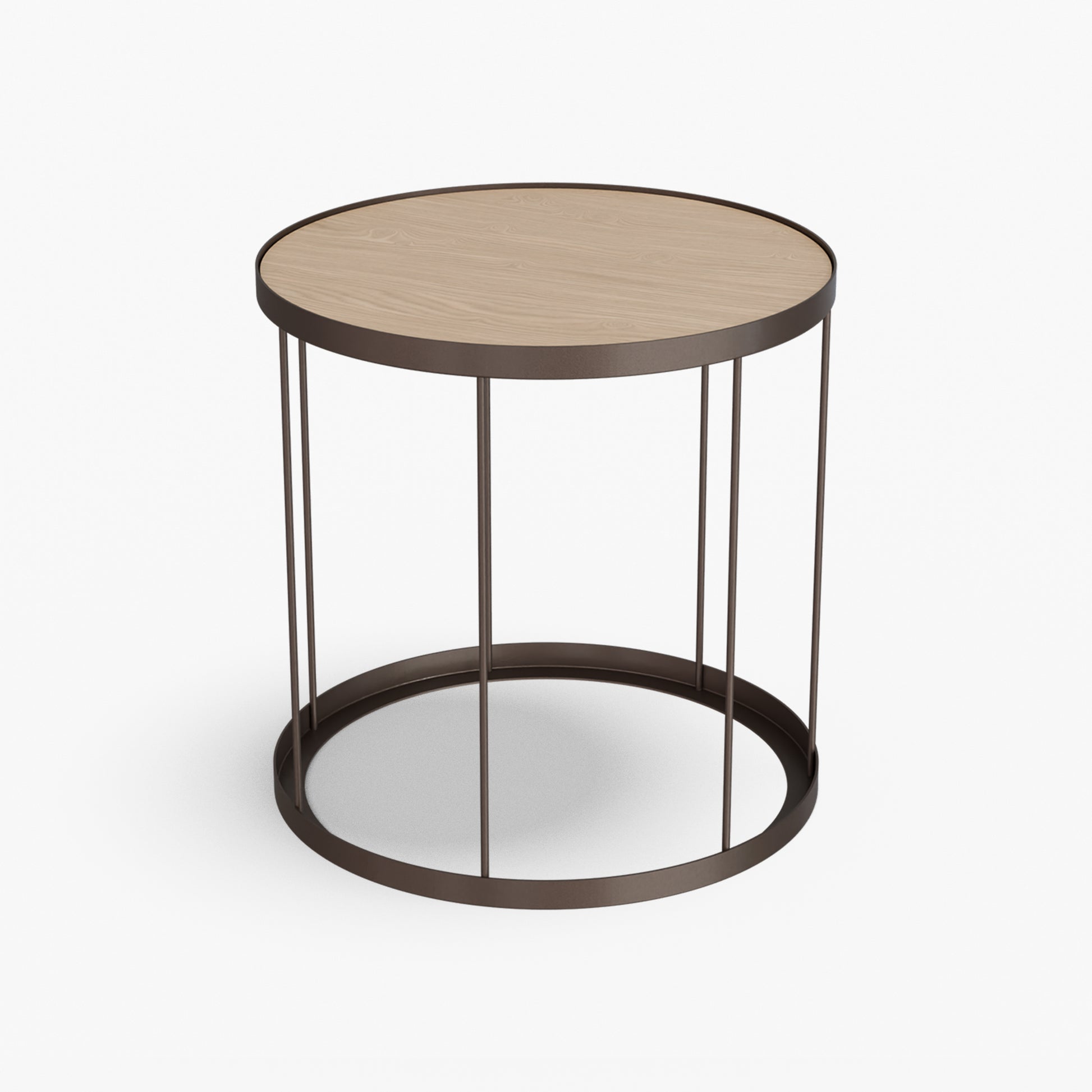 Drum gives the classic round table a rhythm: a top set in a slim steel rim, lifted on slender uprights and anchored by a circular base ring. The open design keeps sightlines clear and the room feeling light, while the metal rim neatly protects the tabletop edge for everyday use. The frame is welded steel with a powder-coat finish (a tough, baked-on layer that resists chips and scratches) for long-term durability. Style it with a tray or let the sculptural silhouette take center stage.