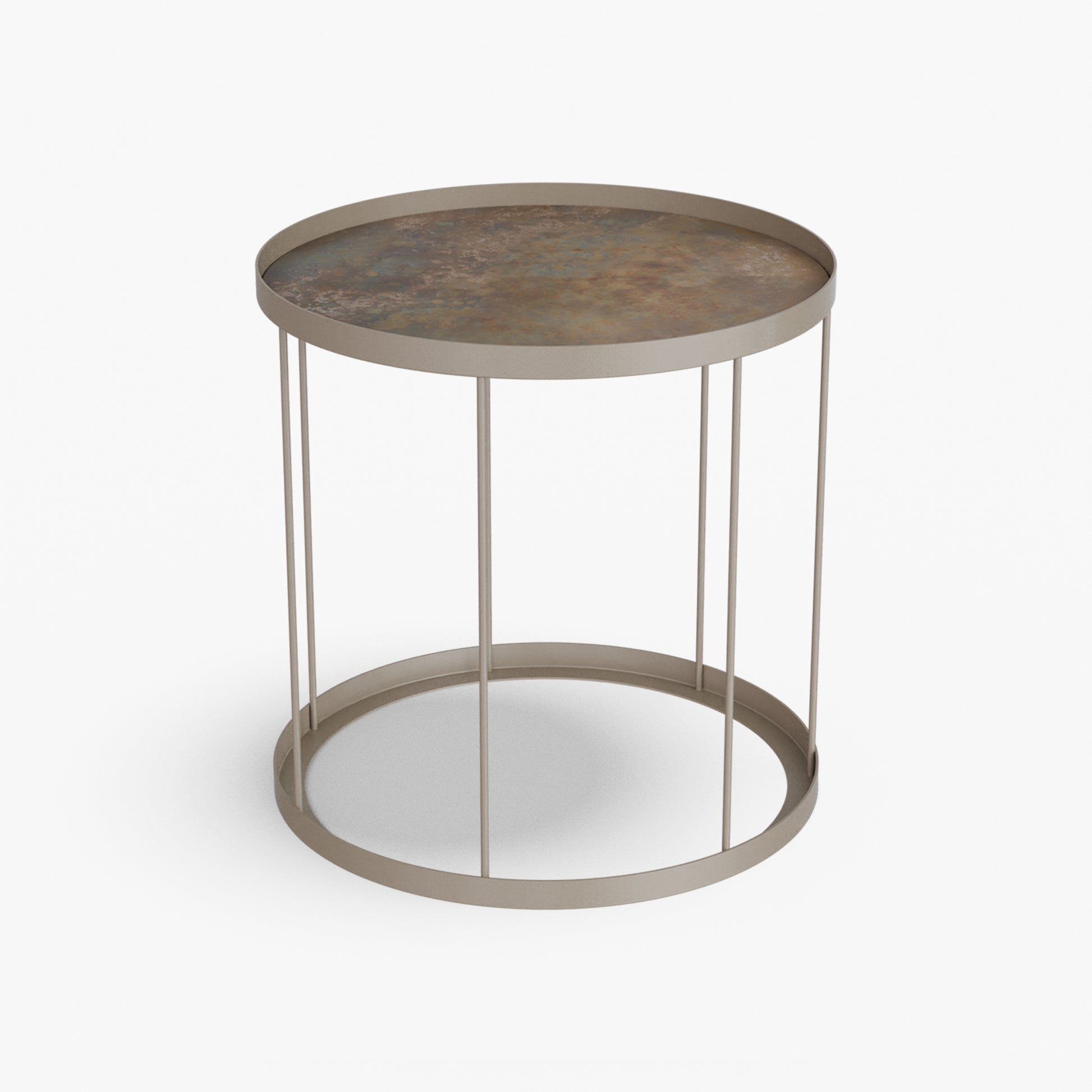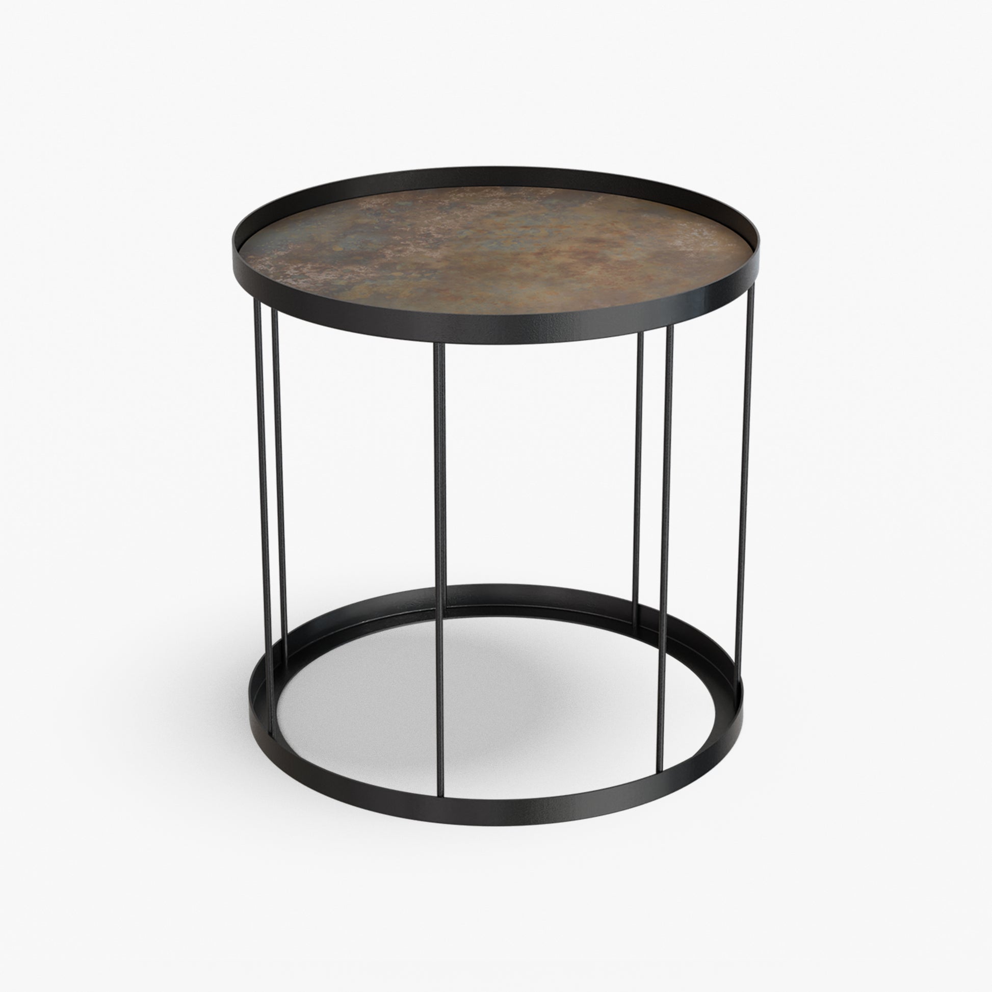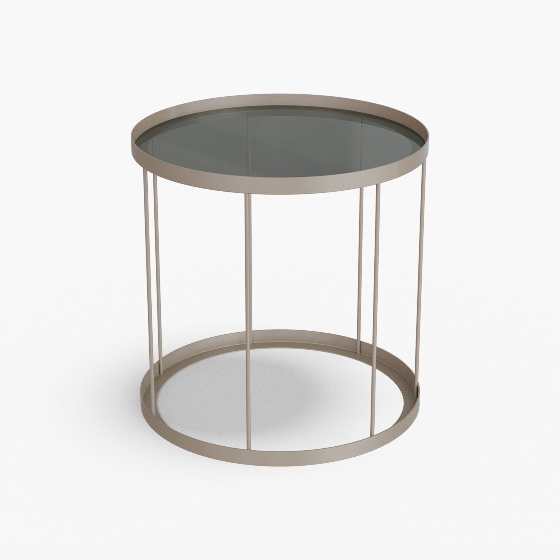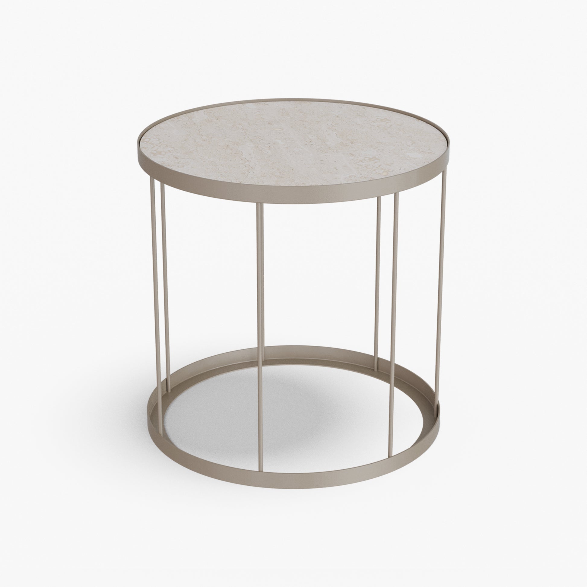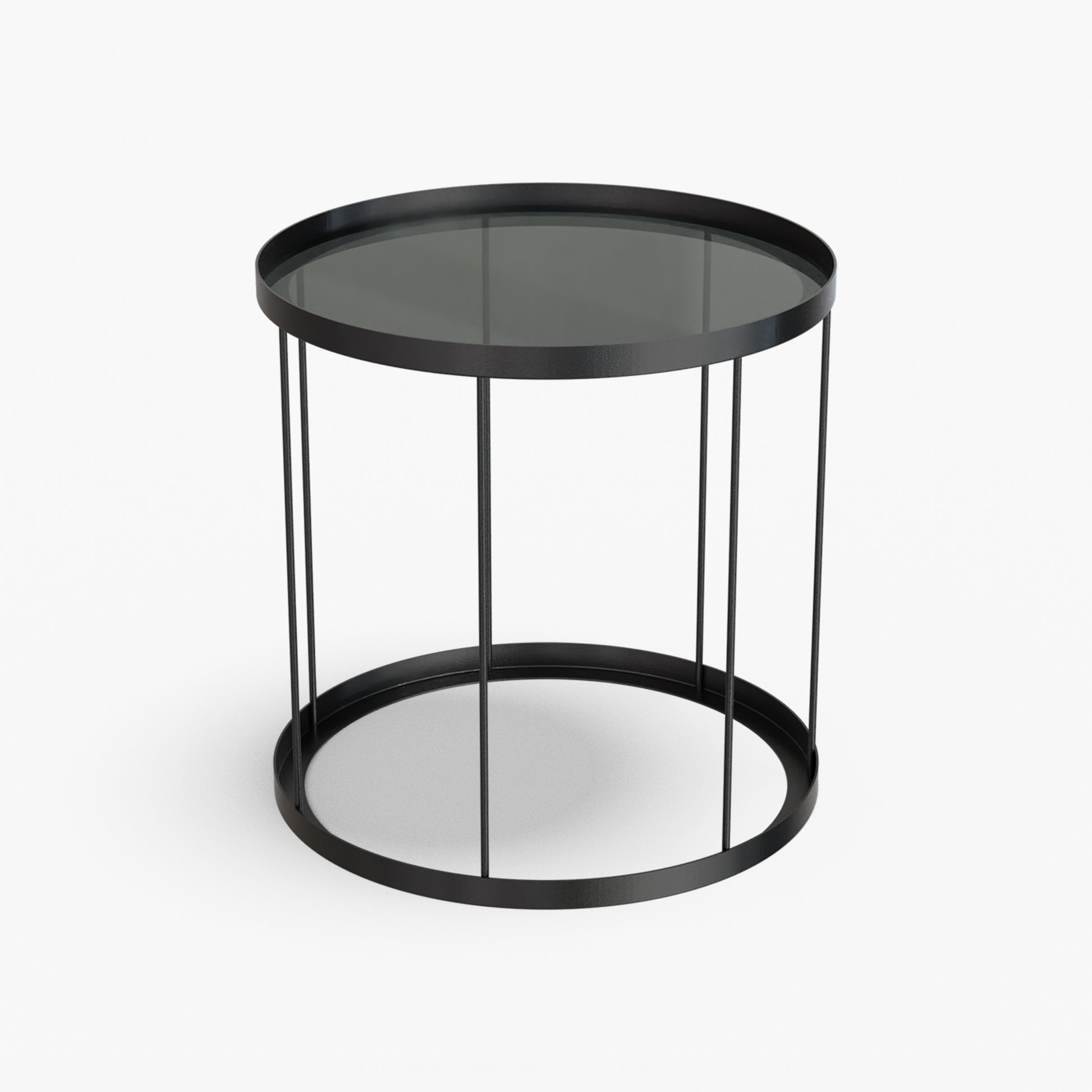 Drum gives the classic round table a rhythm: a top set in a slim steel rim, lifted on slender uprights and anchored by a circular base ring. The open design keeps sightlines clear and the room feeling light, while the metal rim neatly protects the tabletop edge for everyday use. The frame is welded steel with a powder-coat finish (a tough, baked-on layer that resists chips and scratches) for long-term durability. Style it with a tray or let the sculptural silhouette take center stage.