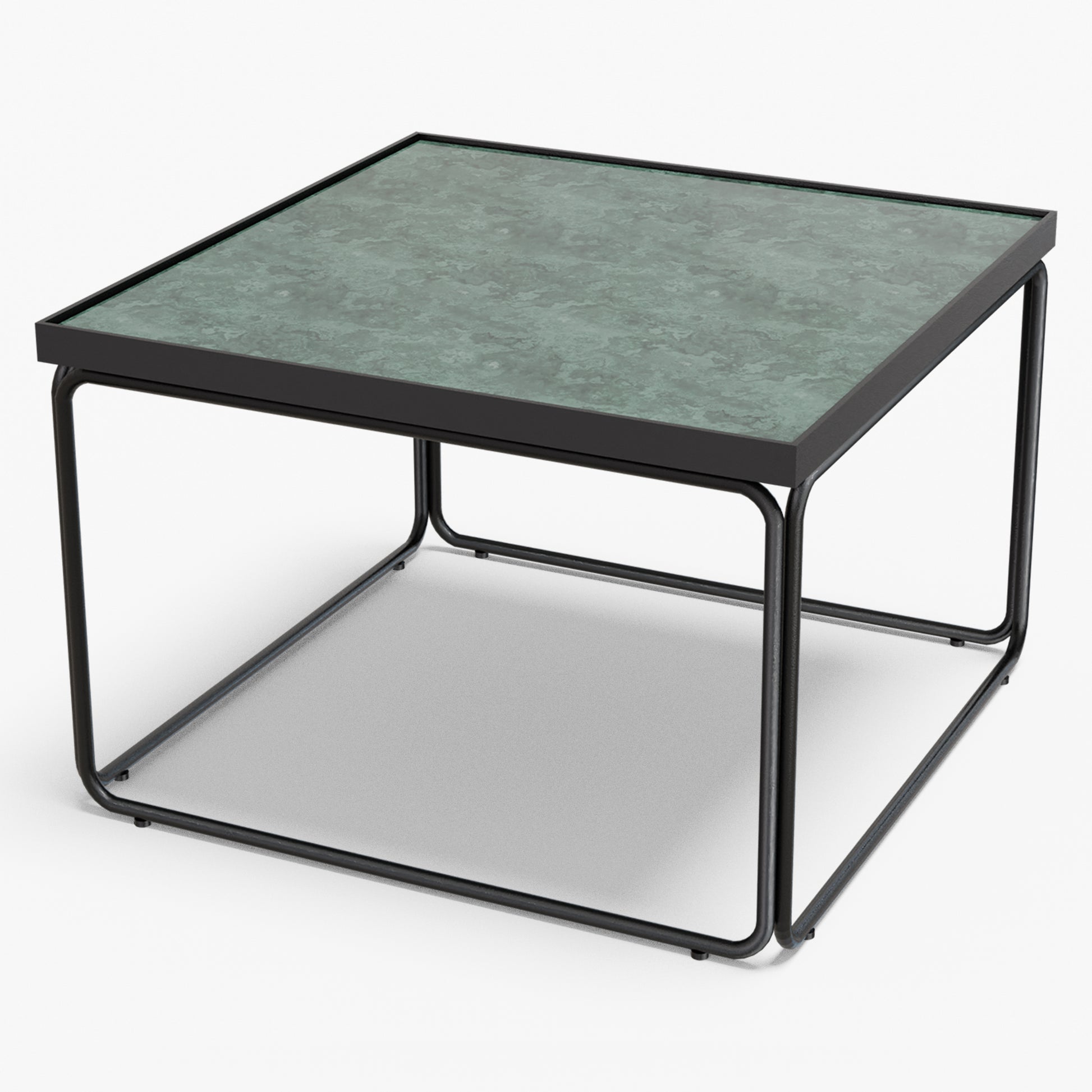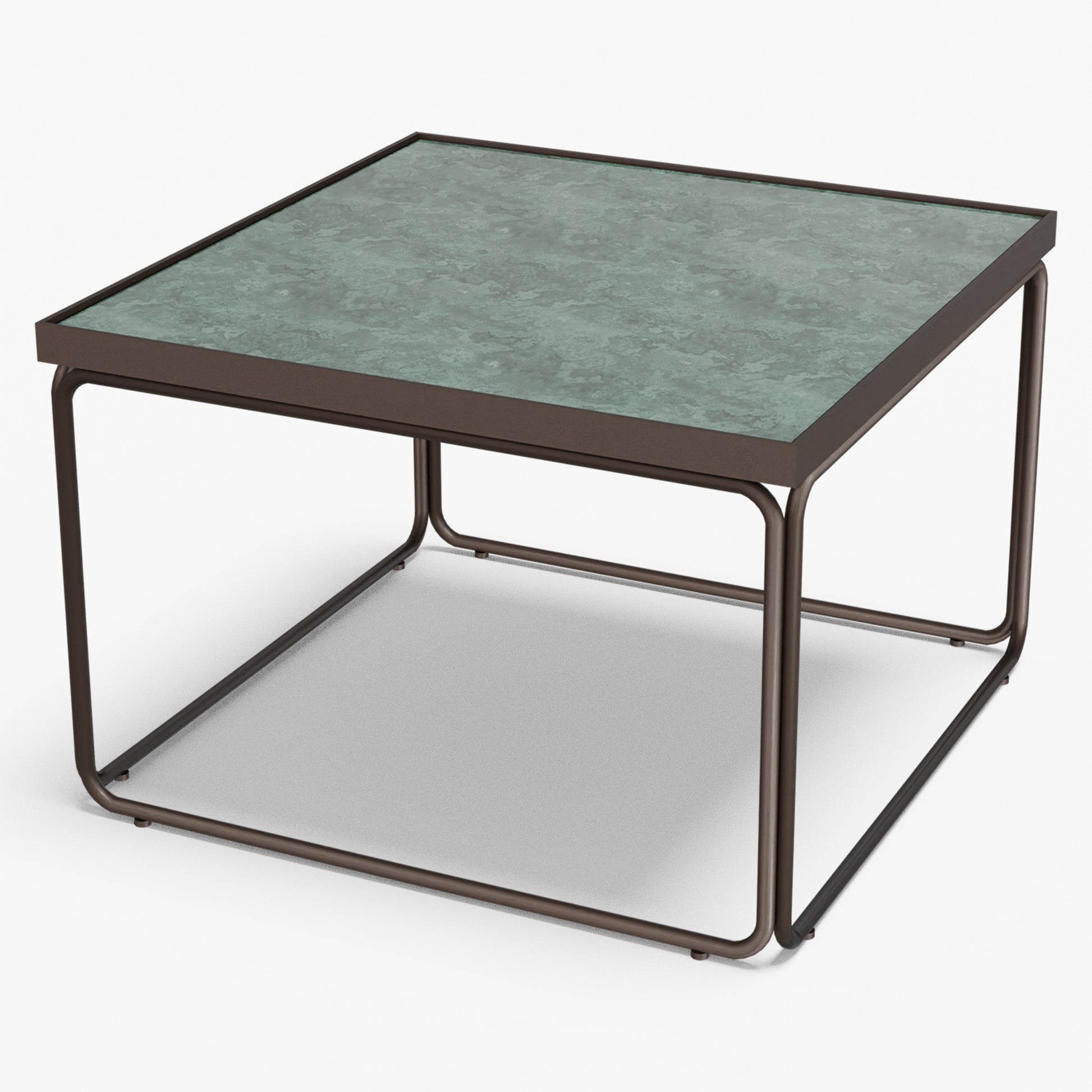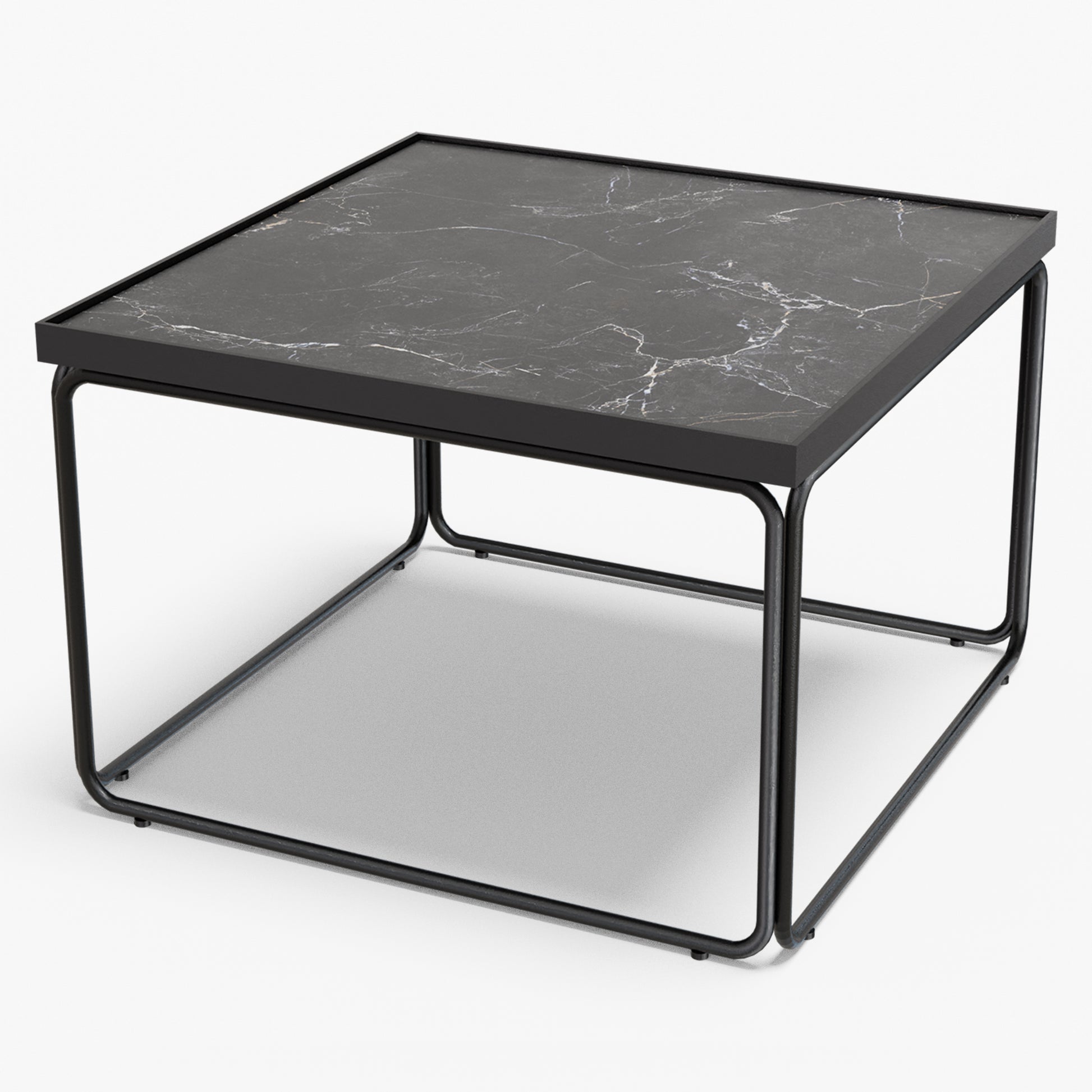 Rounded softens a square silhouette with gentle, radius corners and an airy tube-steel frame. A slim metal rim crisply frames the stone top, while protecting the edge for everyday use. The continuous, rounded base keeps sightlines open and gives the table a light look with confident stability. Built to last, the frame is welded steel finished in powder coat (a tough, baked-on layer that resists chips and scratches). Discreet floor glides protect your surfaces and make repositioning easy. The surface wipes clean in seconds use one as a compact centerpiece or pair two for a larger setting without visual clutter.