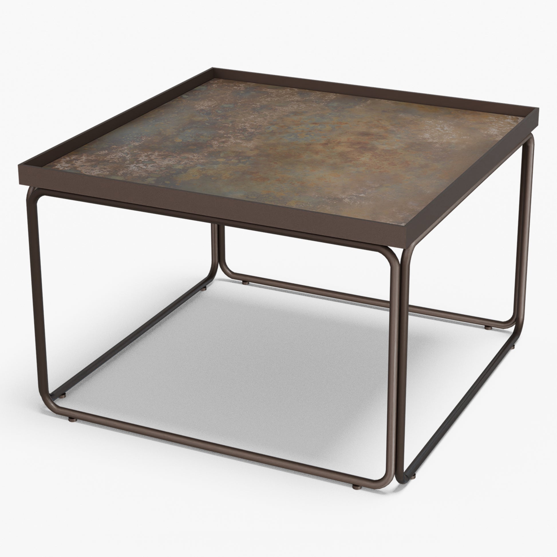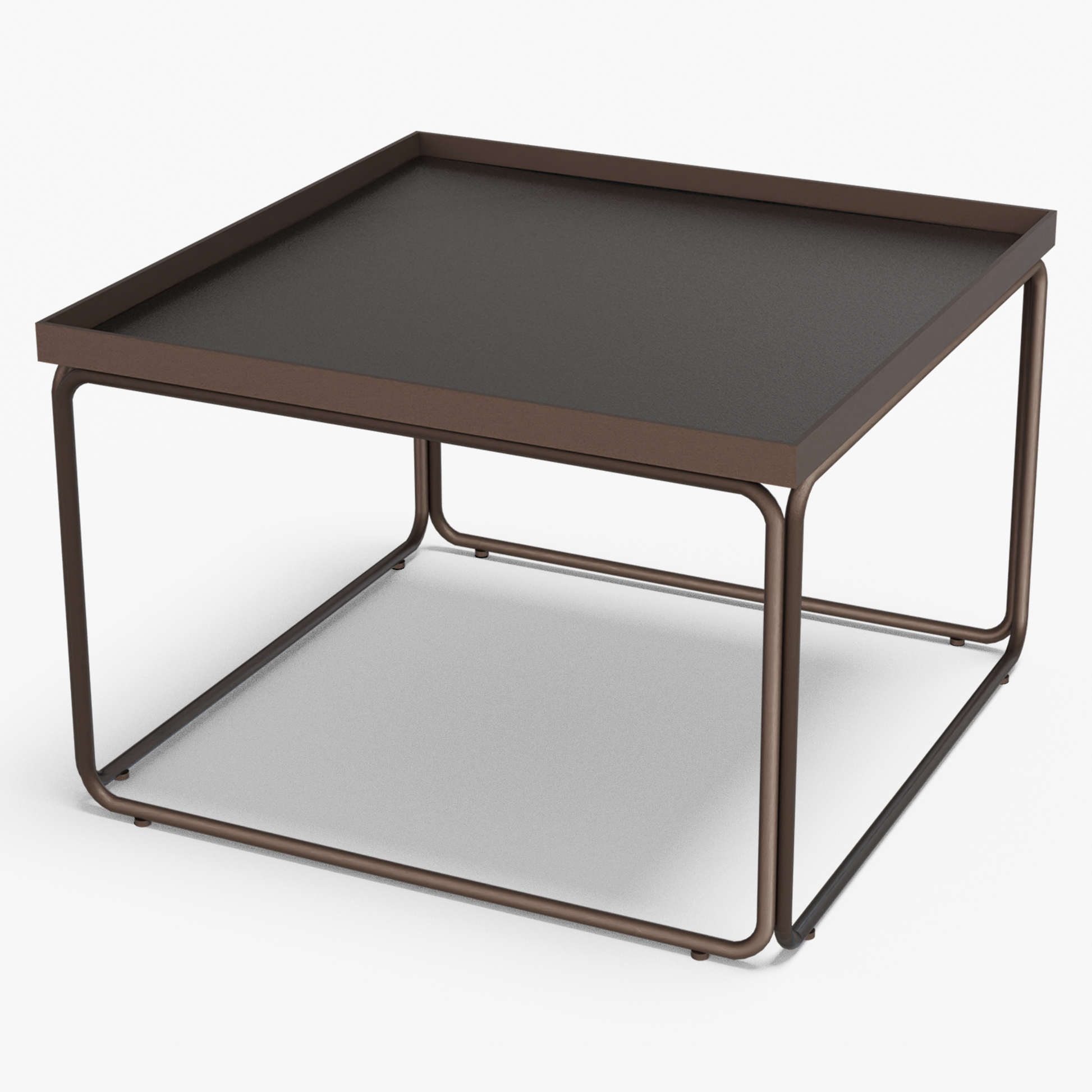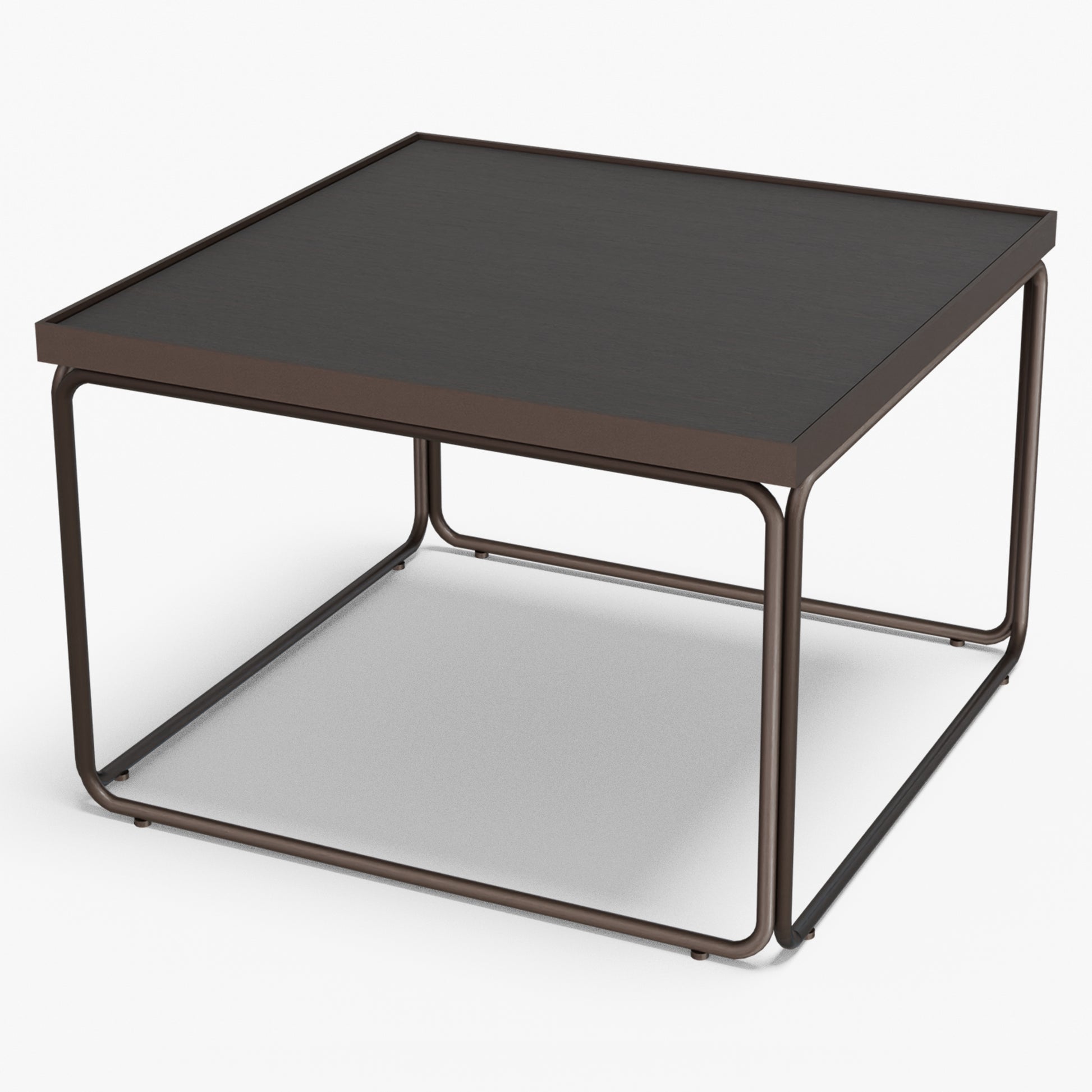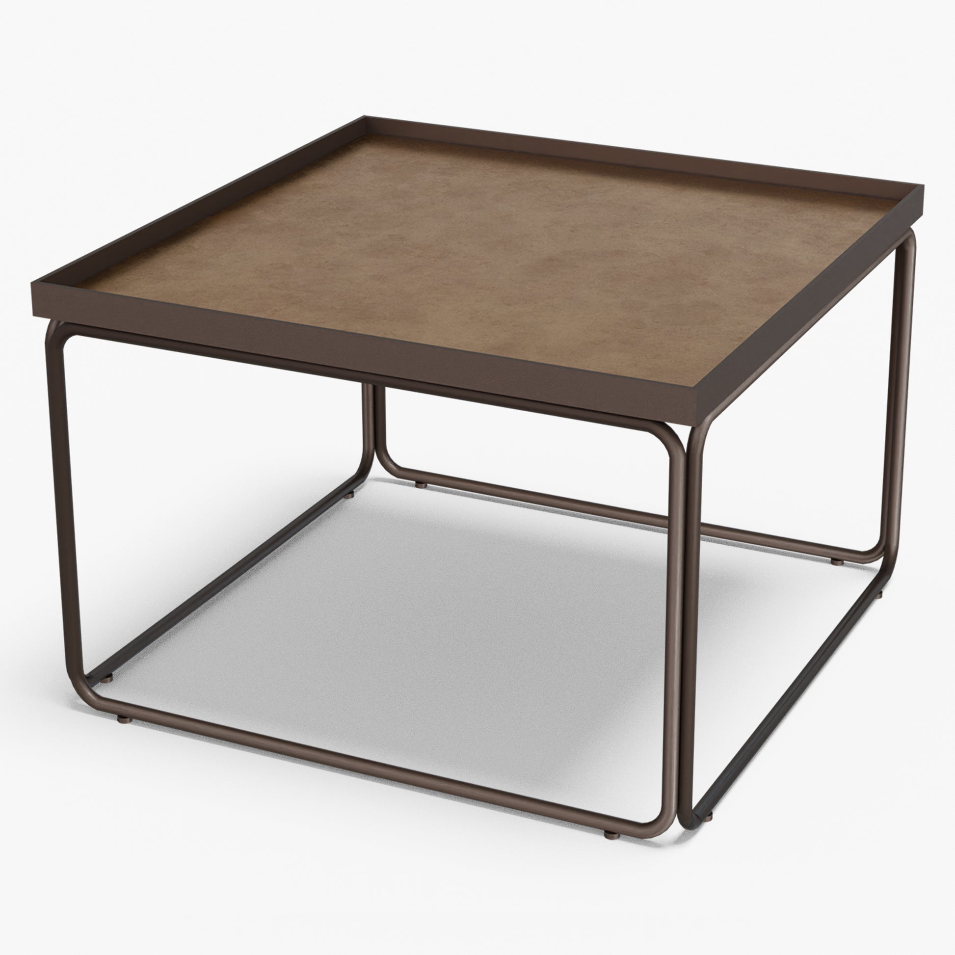 Rounded softens a square silhouette with gentle, radius corners and an airy tube-steel frame. A slim metal rim crisply frames the stone top, while protecting the edge for everyday use. The continuous, rounded base keeps sightlines open and gives the table a light look with confident stability. Built to last, the frame is welded steel finished in powder coat (a tough, baked-on layer that resists chips and scratches). Discreet floor glides protect your surfaces and make repositioning easy. The surface wipes clean in seconds use one as a compact centerpiece or pair two for a larger setting without visual clutter.