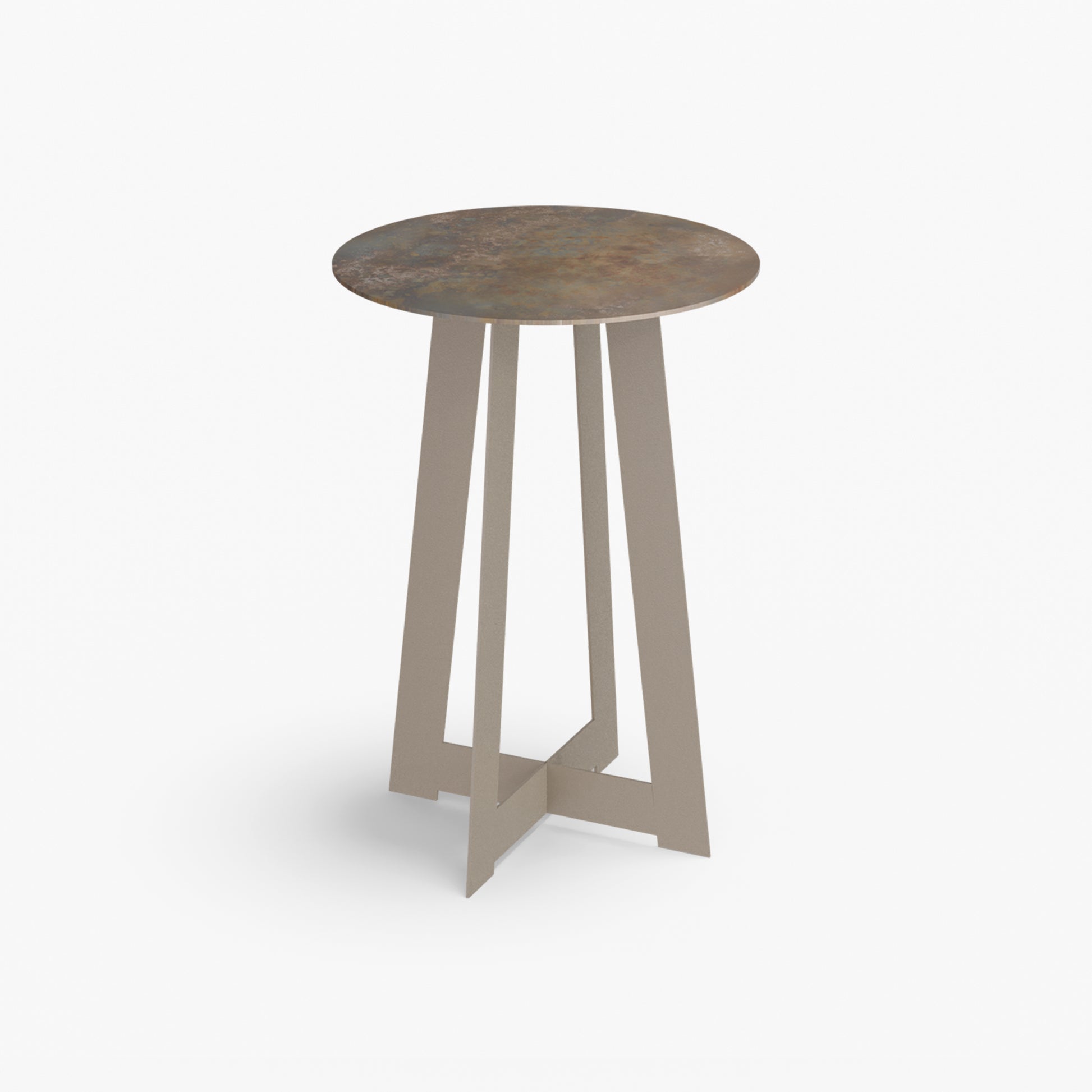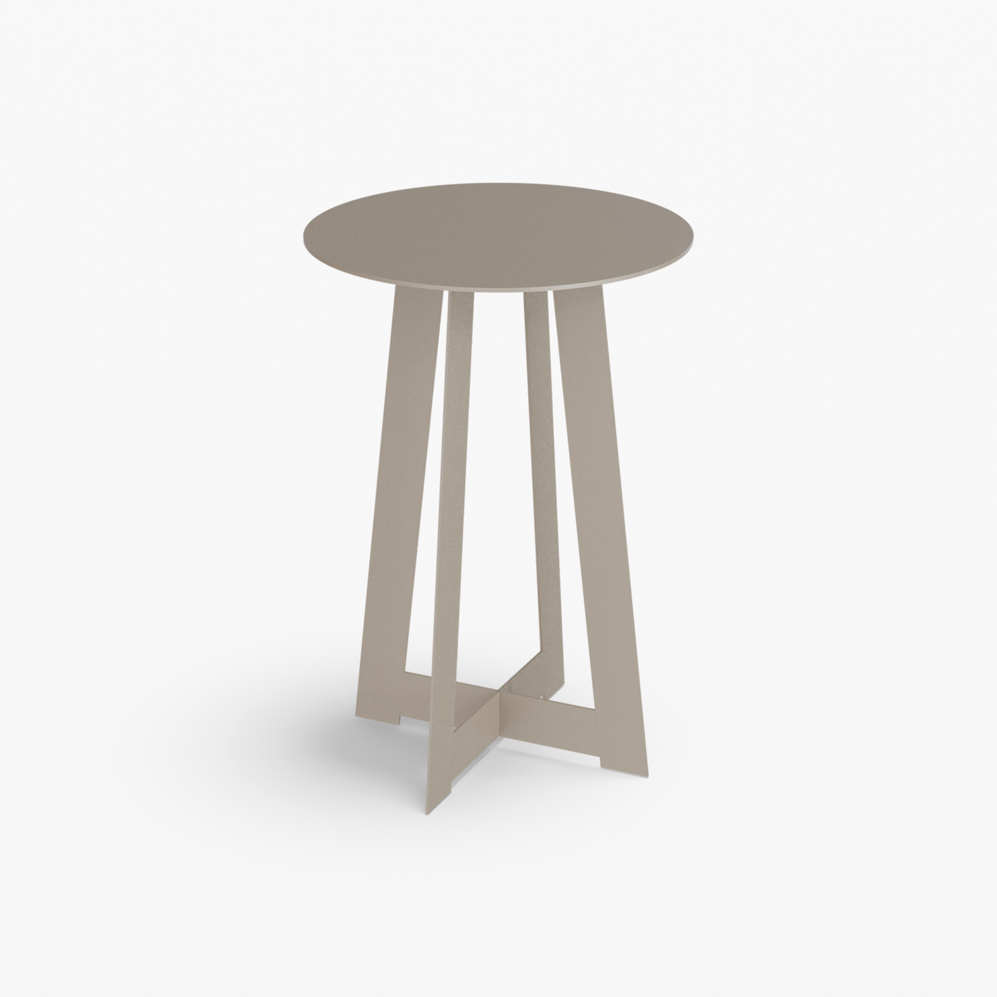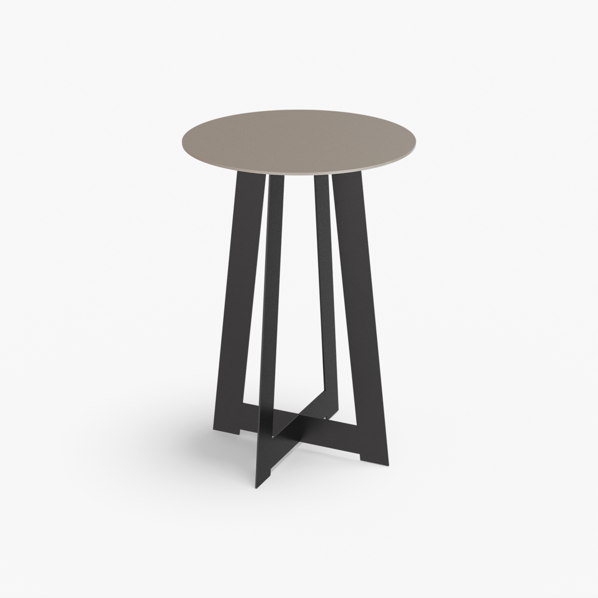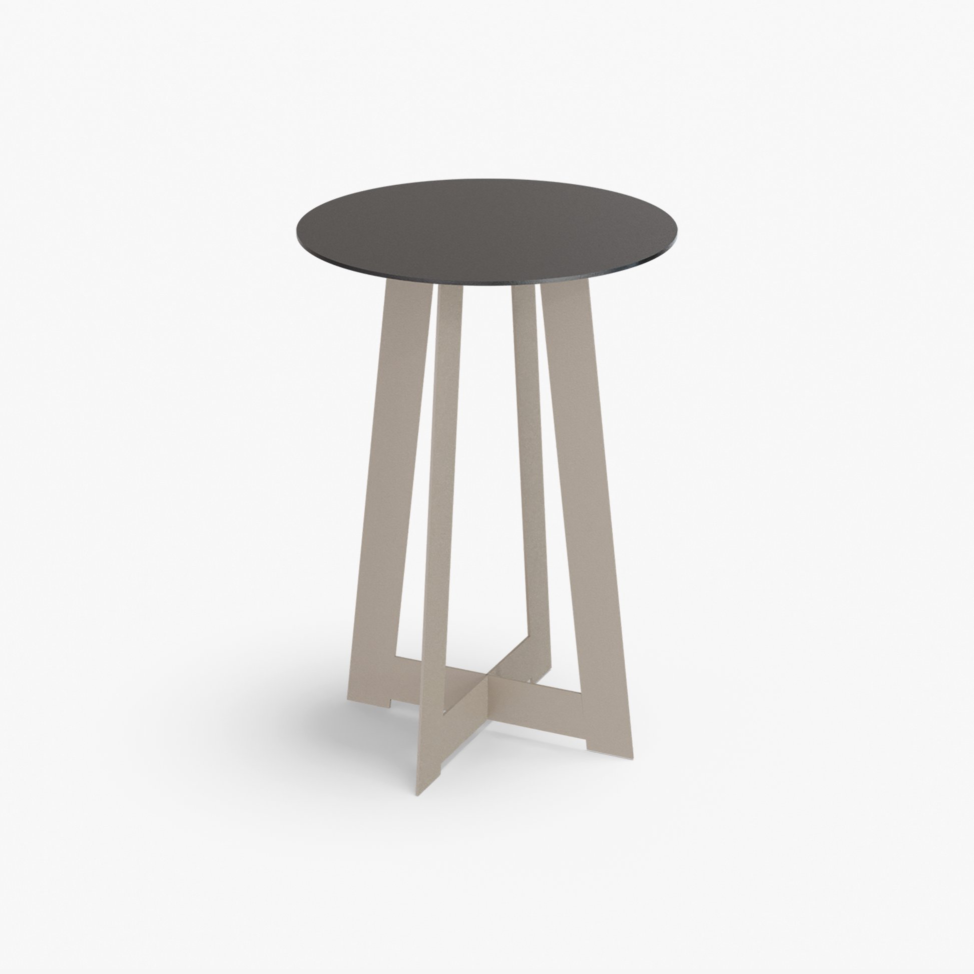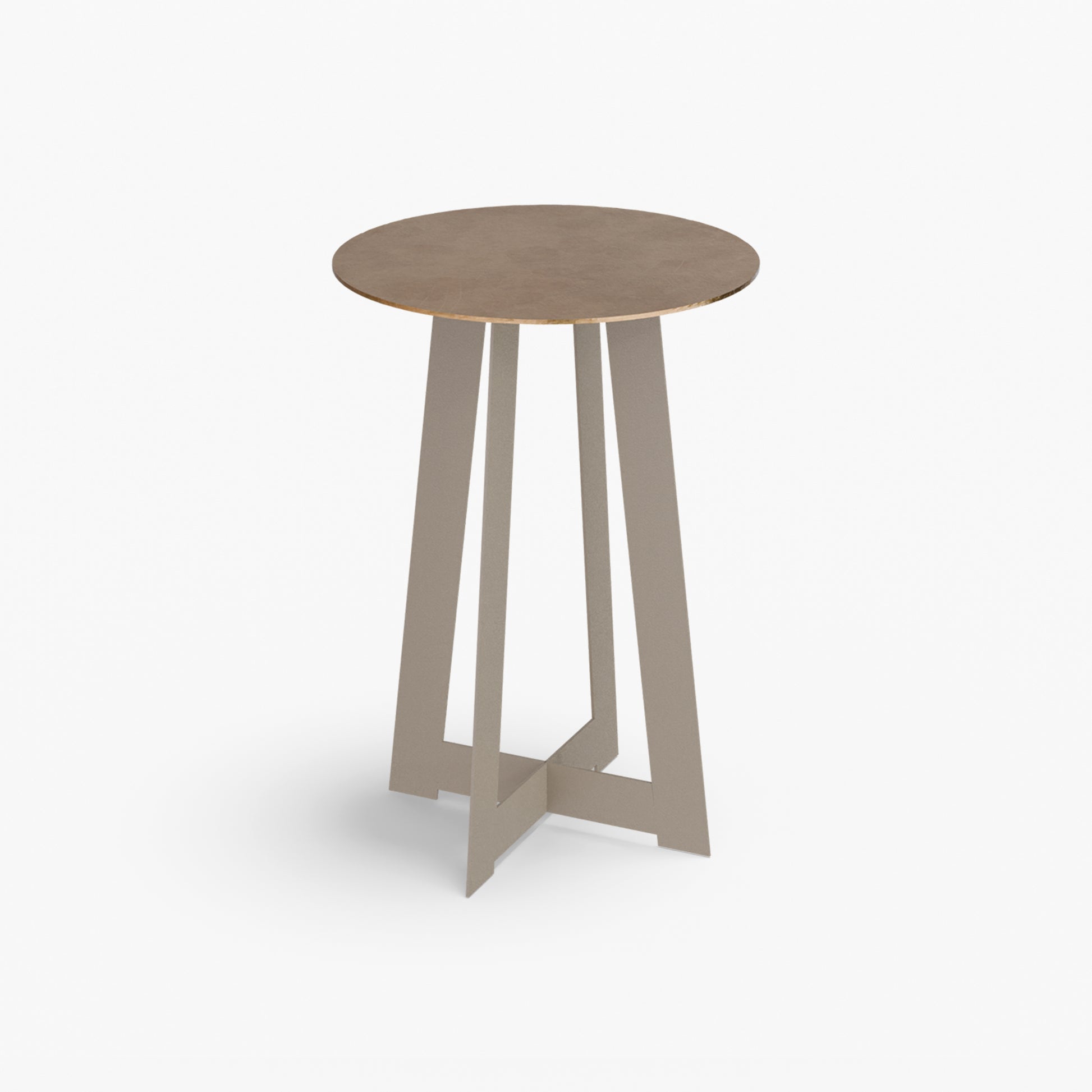 Triangle Round balances a soft, round top with a crisp, architectural base. The top’s natural shape looks sleek, while a slim steel rim keeps the edge clean and refined. Below, three splayed legs meet in a triangular frame, giving the table a light look and excellent stability without visual bulk. Built for everyday living, the base is welded steel with a powder-coat finish (a tough, baked-on layer that resists chips and scratches). Discreet floor glides protect your surfaces and make repositioning easy. The sealed stone surface wipes clean in seconds style it with a tray or let the geometry take center stage.