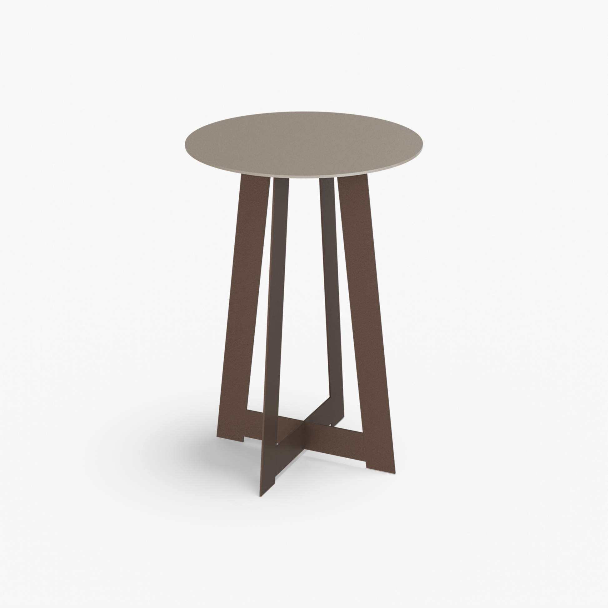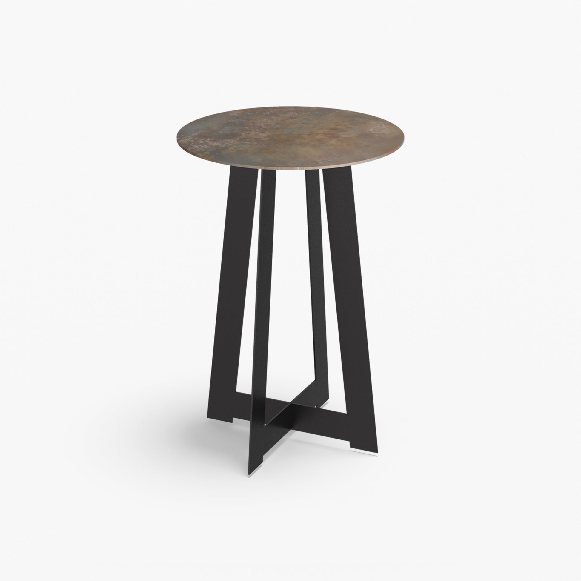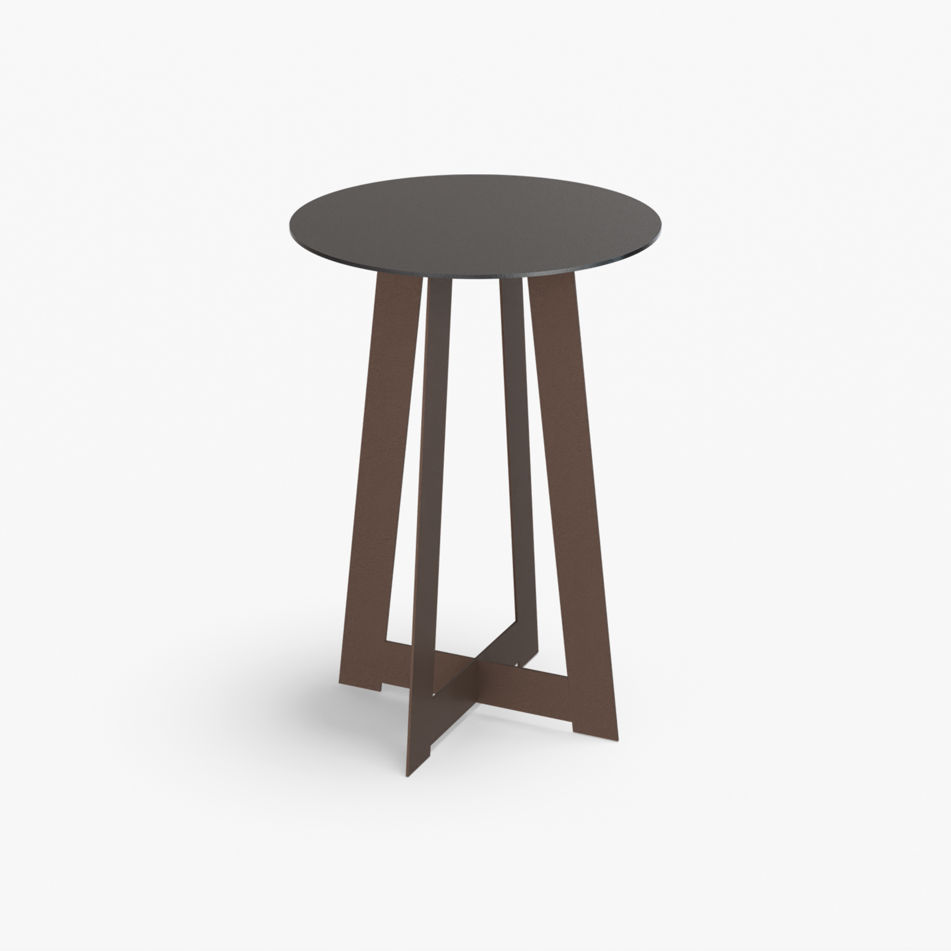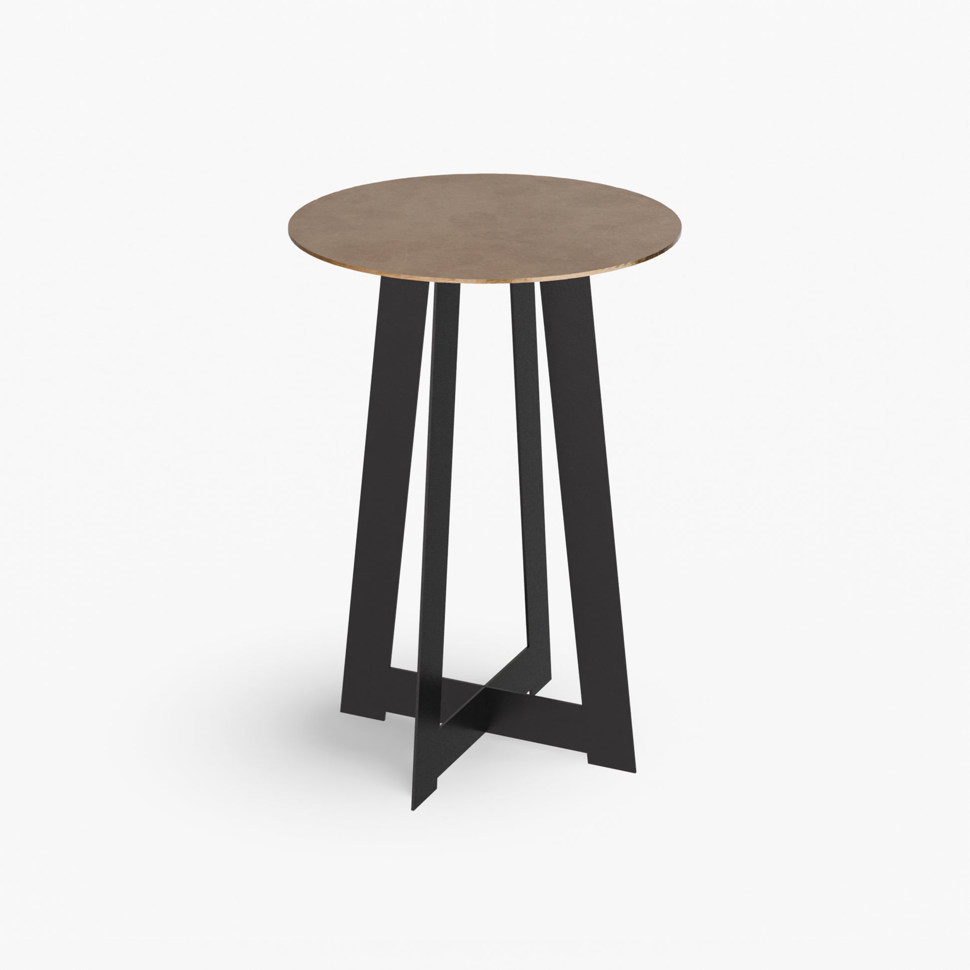 Materials: powder-coated steel base; Solid wood, Glass, Marble, powder-coated/Processed metal top