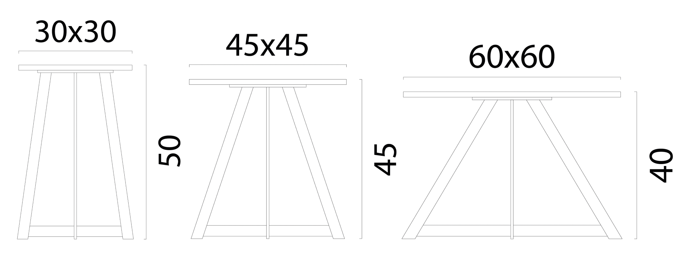Materials: powder-coated steel base; Solid wood, Glass, Marble, powder-coated/Processed metal top