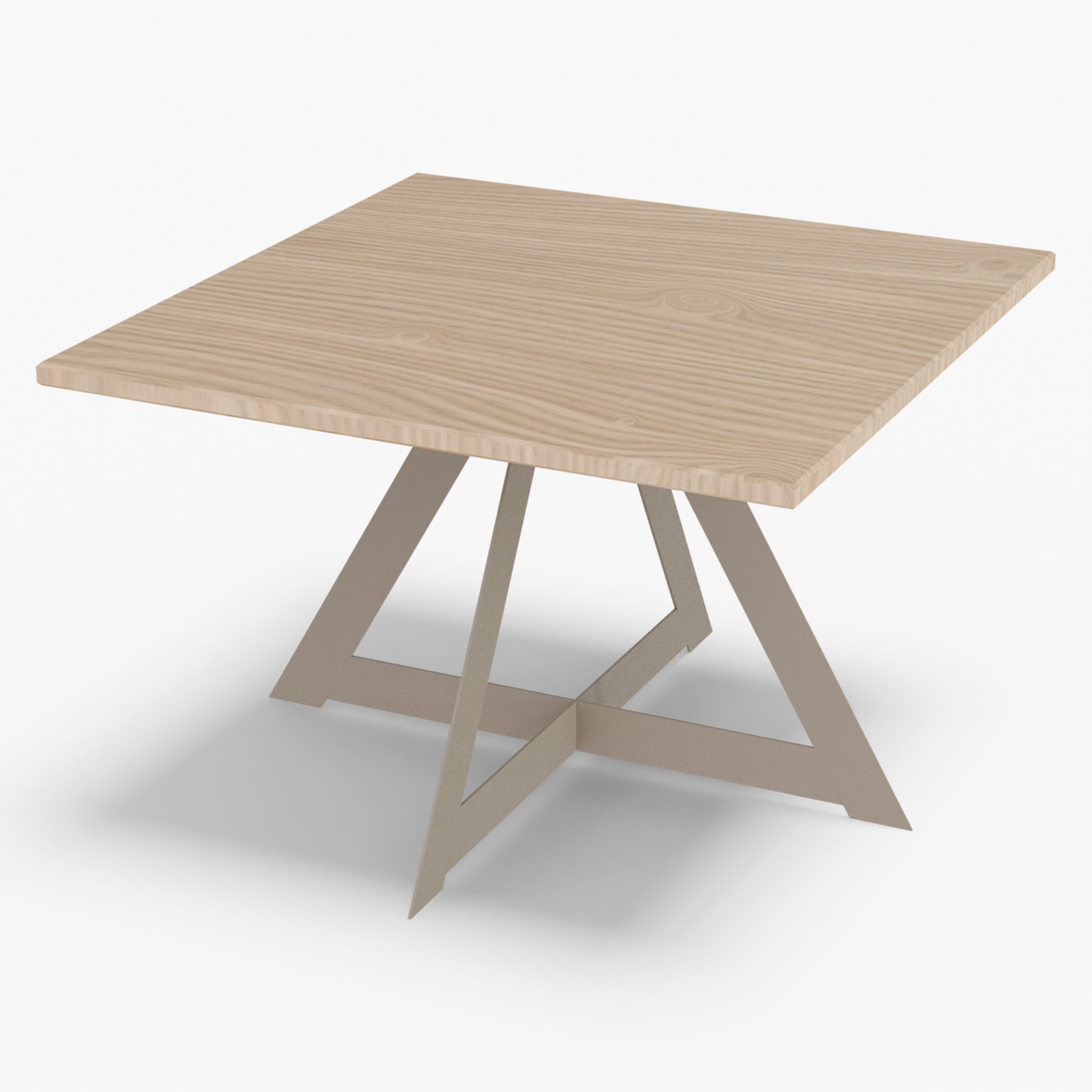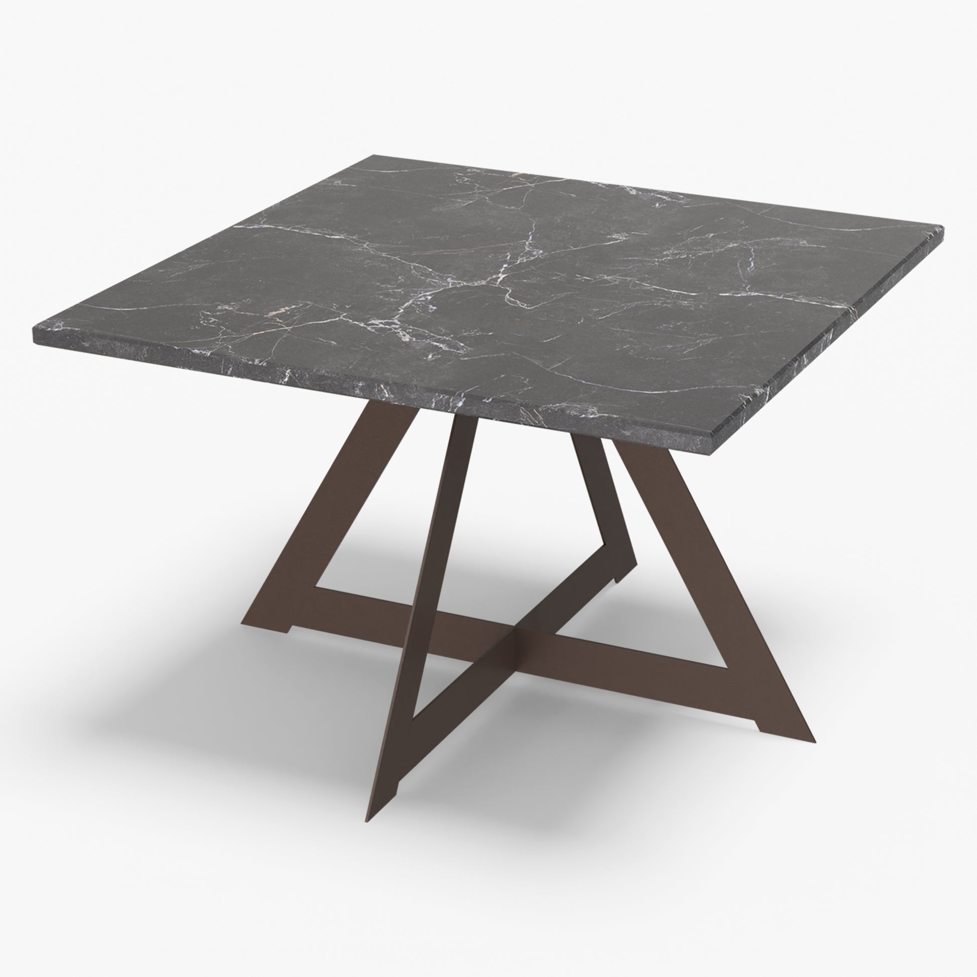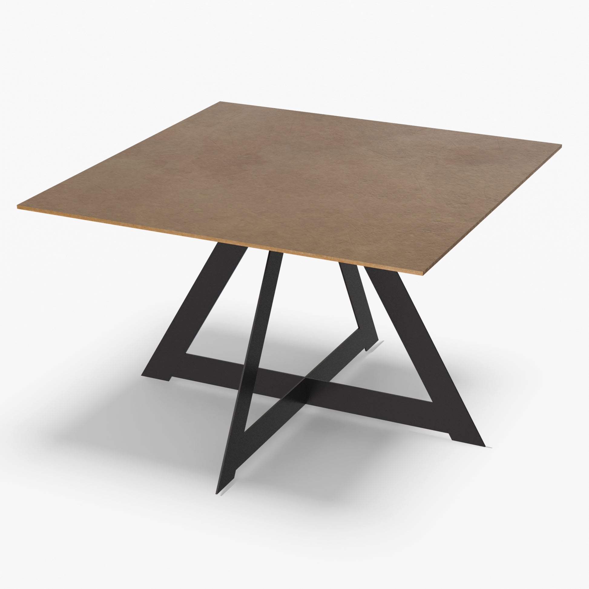 Triangle Square balances a soft, square top with a crisp, architectural base. The top’s natural shape looks sleek, while a slim steel rim keeps the edge clean and refined. Below, three splayed legs meet in a triangular frame, giving the table a light look and excellent stability without visual bulk. Built for everyday living, the base is welded steel with a powder-coat finish (a tough, baked-on layer that resists chips and scratches). Discreet floor glides protect your surfaces and make repositioning easy. The sealed stone surface wipes clean in seconds style it with a tray or let the geometry take center stage.
