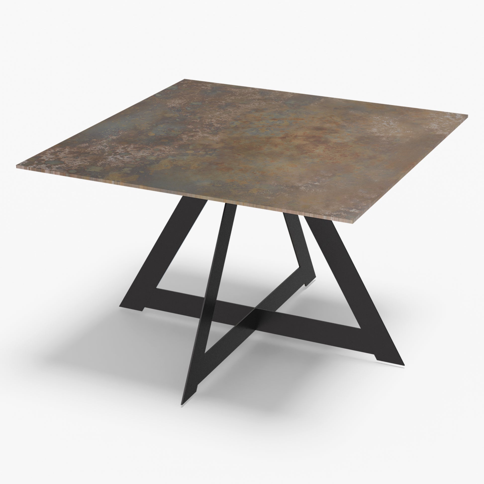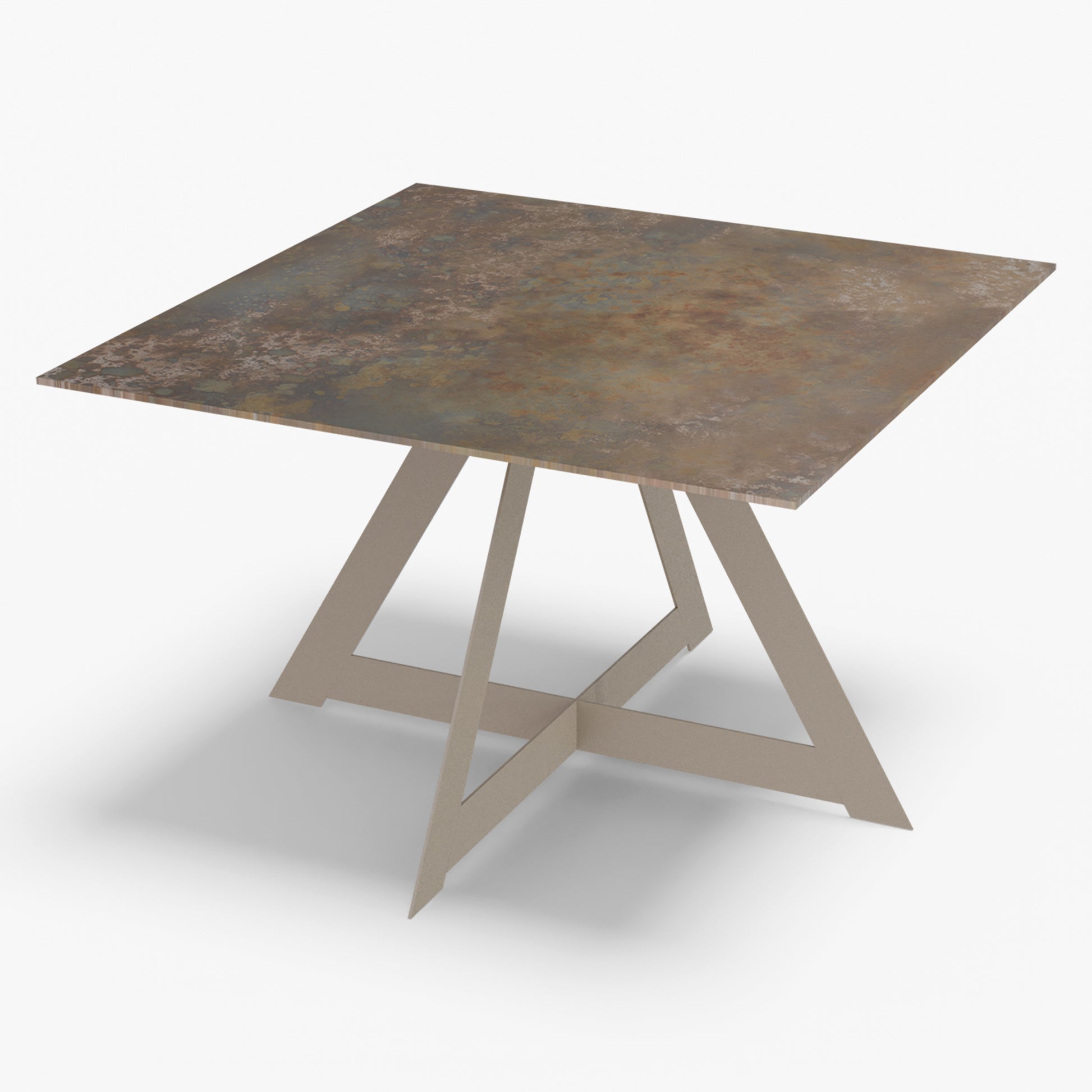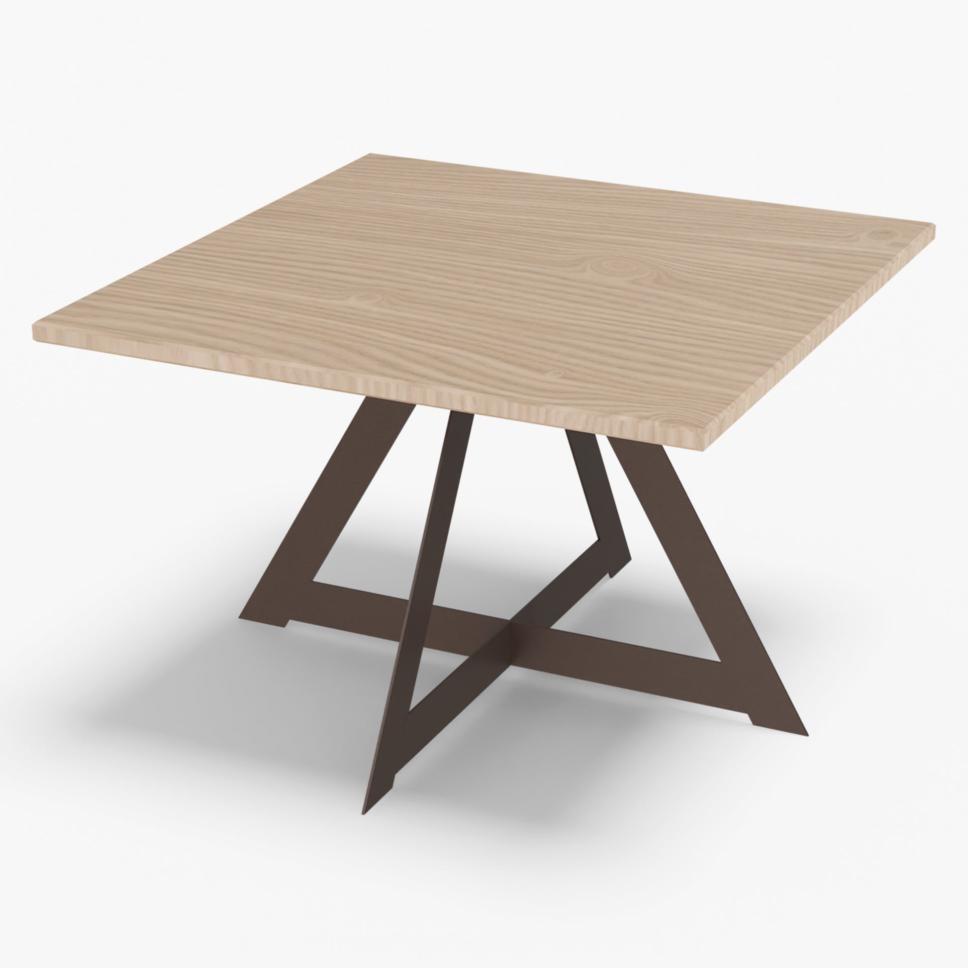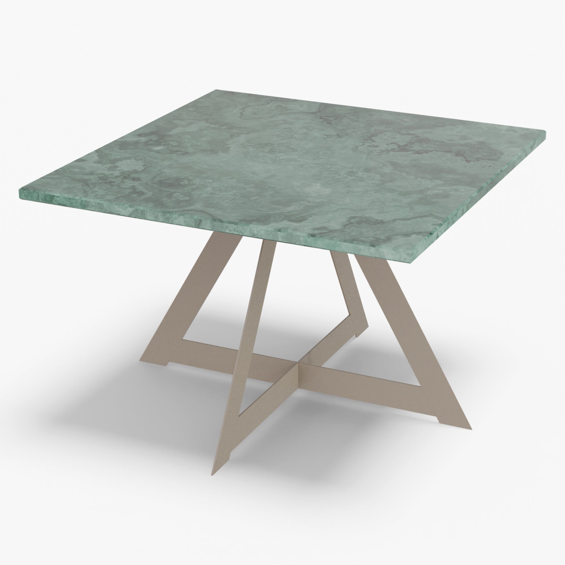 Triangle Square balances a soft, square top with a crisp, architectural base. The top’s natural shape looks sleek, while a slim steel rim keeps the edge clean and refined. Below, three splayed legs meet in a triangular frame, giving the table a light look and excellent stability without visual bulk. Built for everyday living, the base is welded steel with a powder-coat finish (a tough, baked-on layer that resists chips and scratches). Discreet floor glides protect your surfaces and make repositioning easy. The sealed stone surface wipes clean in seconds style it with a tray or let the geometry take center stage.