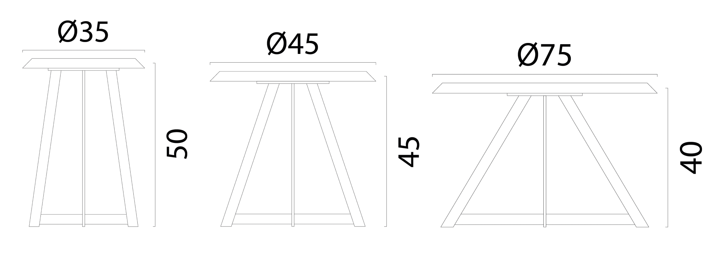 Materials: powder-coated steel base; Solid wood, Glass, Marble, powder-coated/Processed metal top