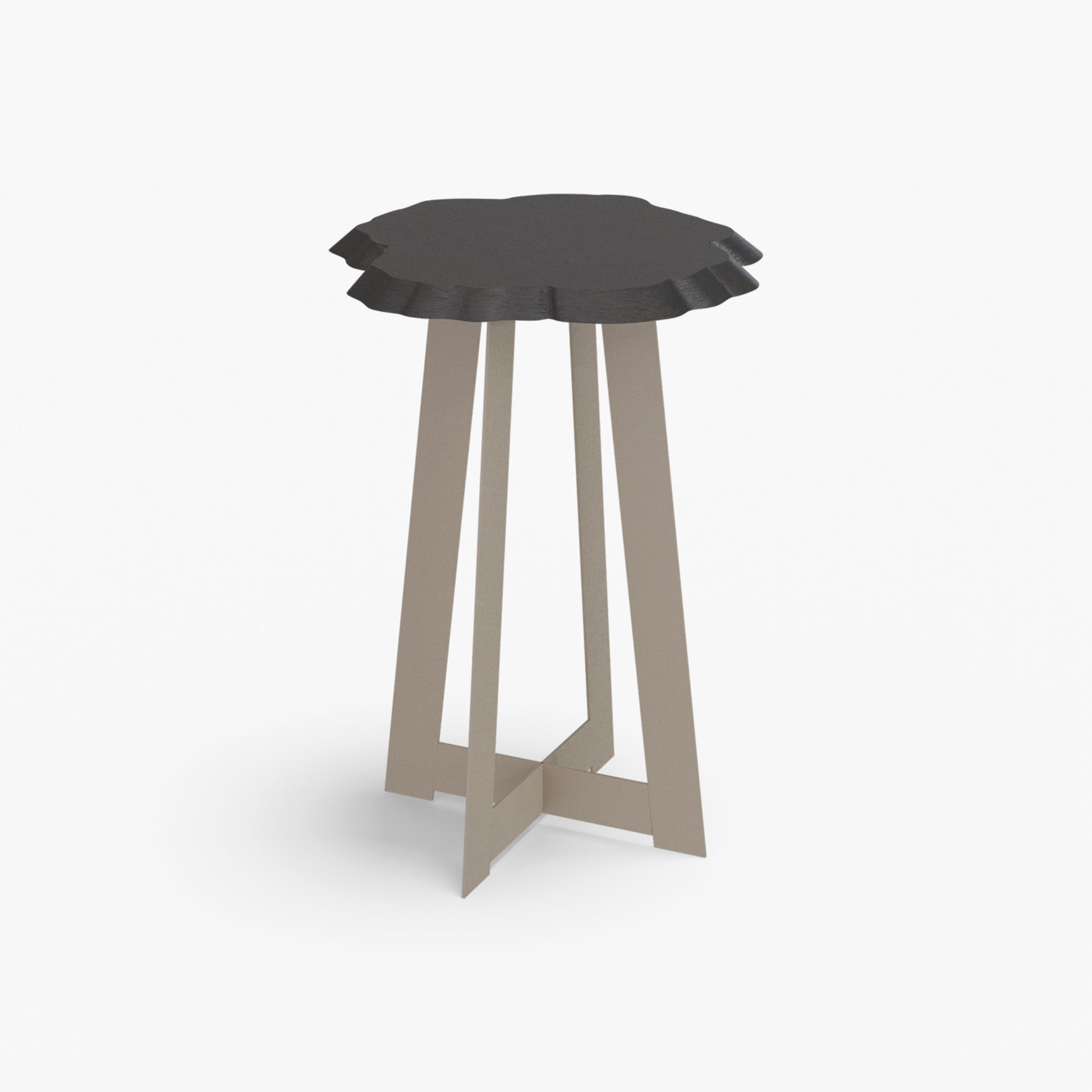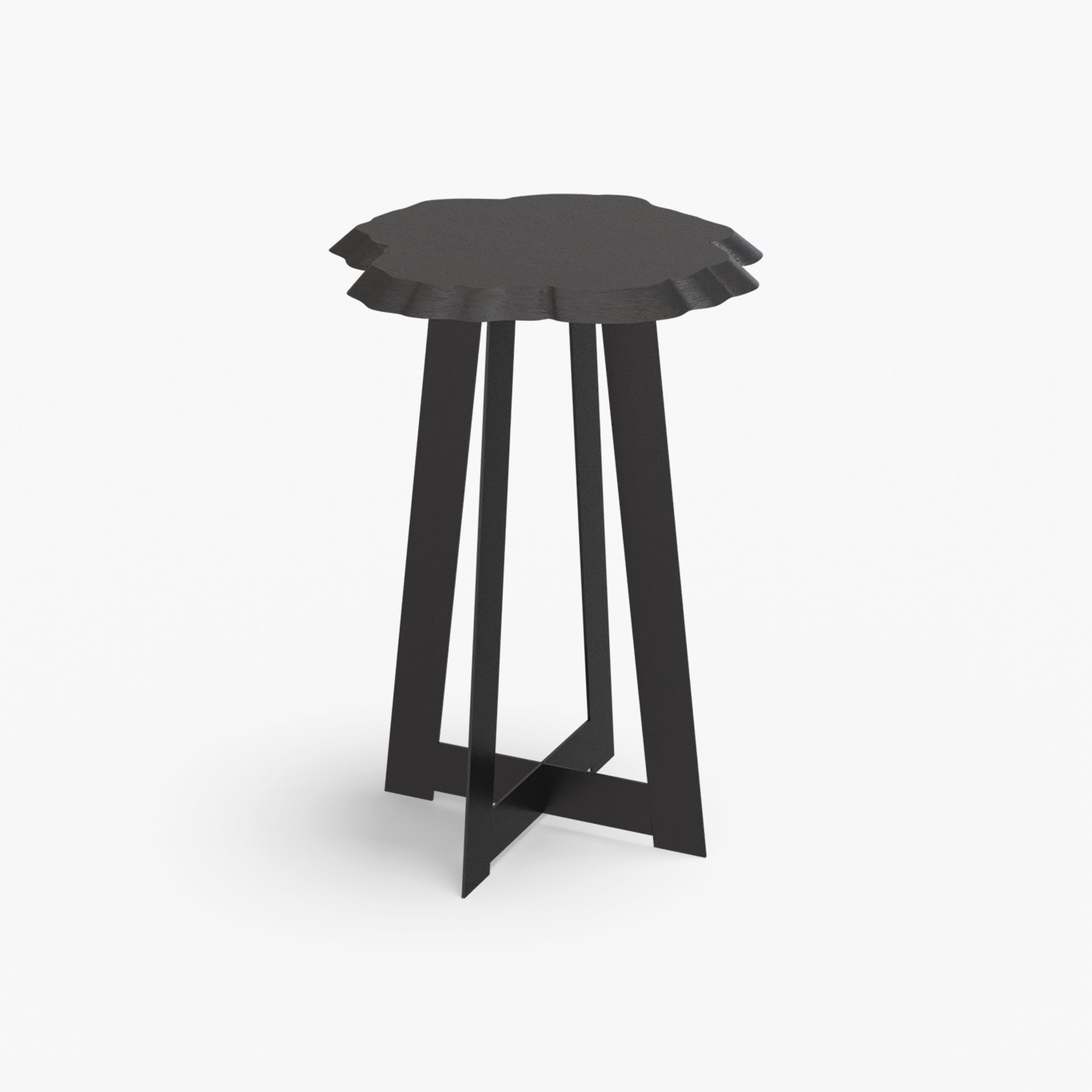Triangle Wood pairs a sculpted, organic top with a crisp triangular base. The slab-style surface is solid wood with a softly carved edge that celebrates natural grain. Below, three splayed steel legs meet in a triangular stretcher, delivering excellent stability while keeping the silhouette open and light. Built for real life, the frame is welded steel with a powder-coat finish (a tough, baked-on layer that resists chips and scratches). Discreet floor glides protect your surfaces and make it easy to reposition. The wood is sealed for everyday use, so it wipes clean in seconds style it with a tray or let the striking geometry and natural texture take center stage.